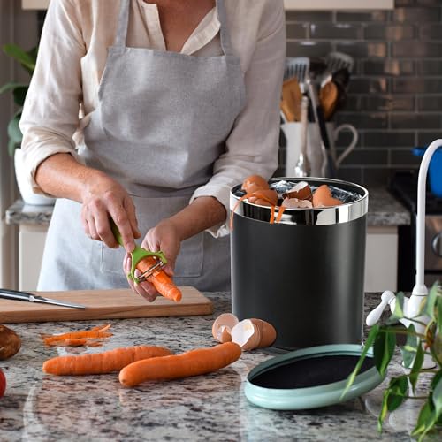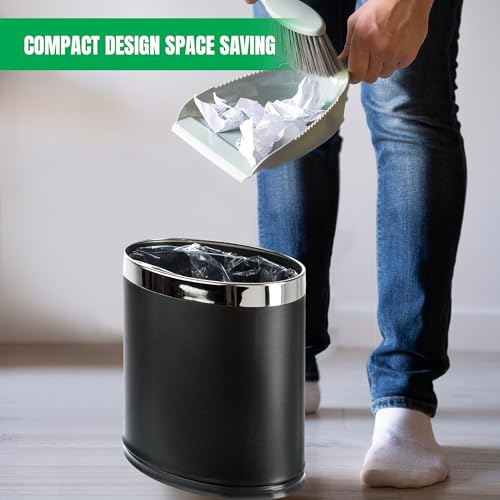 'Invisi-Overlap' Metal Trash Can, Open Top Small Office Wastebasket, Oval Shape (Black)