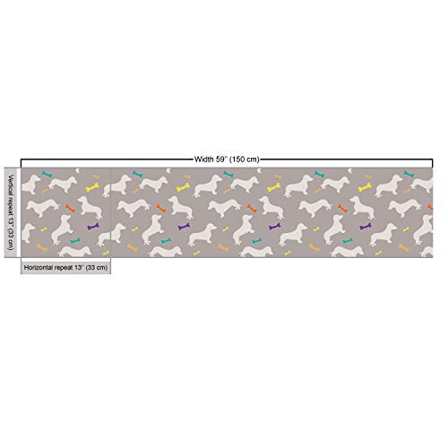 Lunarable Dachshund Fabric by The Yard, Colorful Cartoon Bones and House Pet Silhouettes Domestic Dogs Greyscale Backdrop, Decorative Fabric for Upholstery and Home Accents, 3 Yards, Multicolor