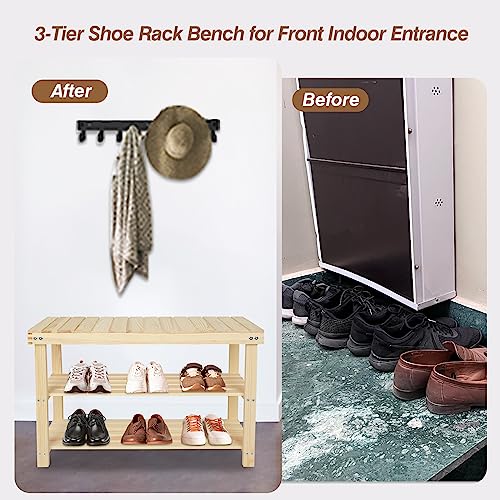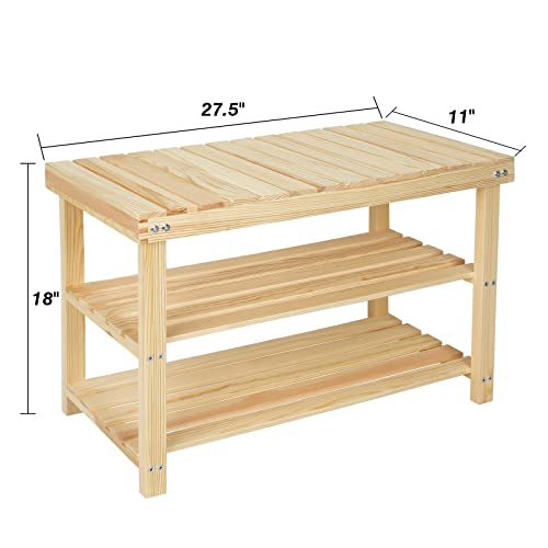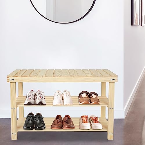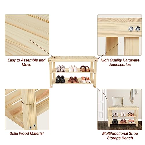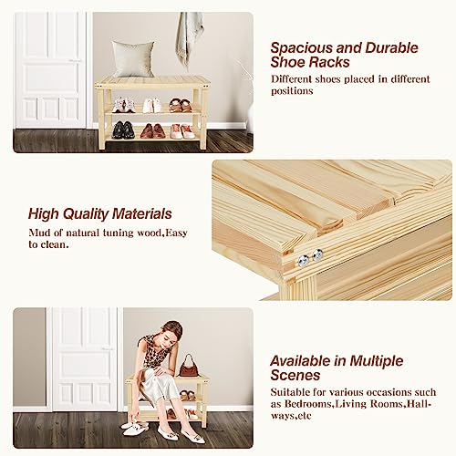 ECOMEX Shoe Rack Bench, 2-Tier Storage Shoe Shelf,Entryway Bench Seat with Shoe Storage Shelf, Wood Entryway Bench Shoe Rack, Storage Bench for Entryway Hallway,Nature,L