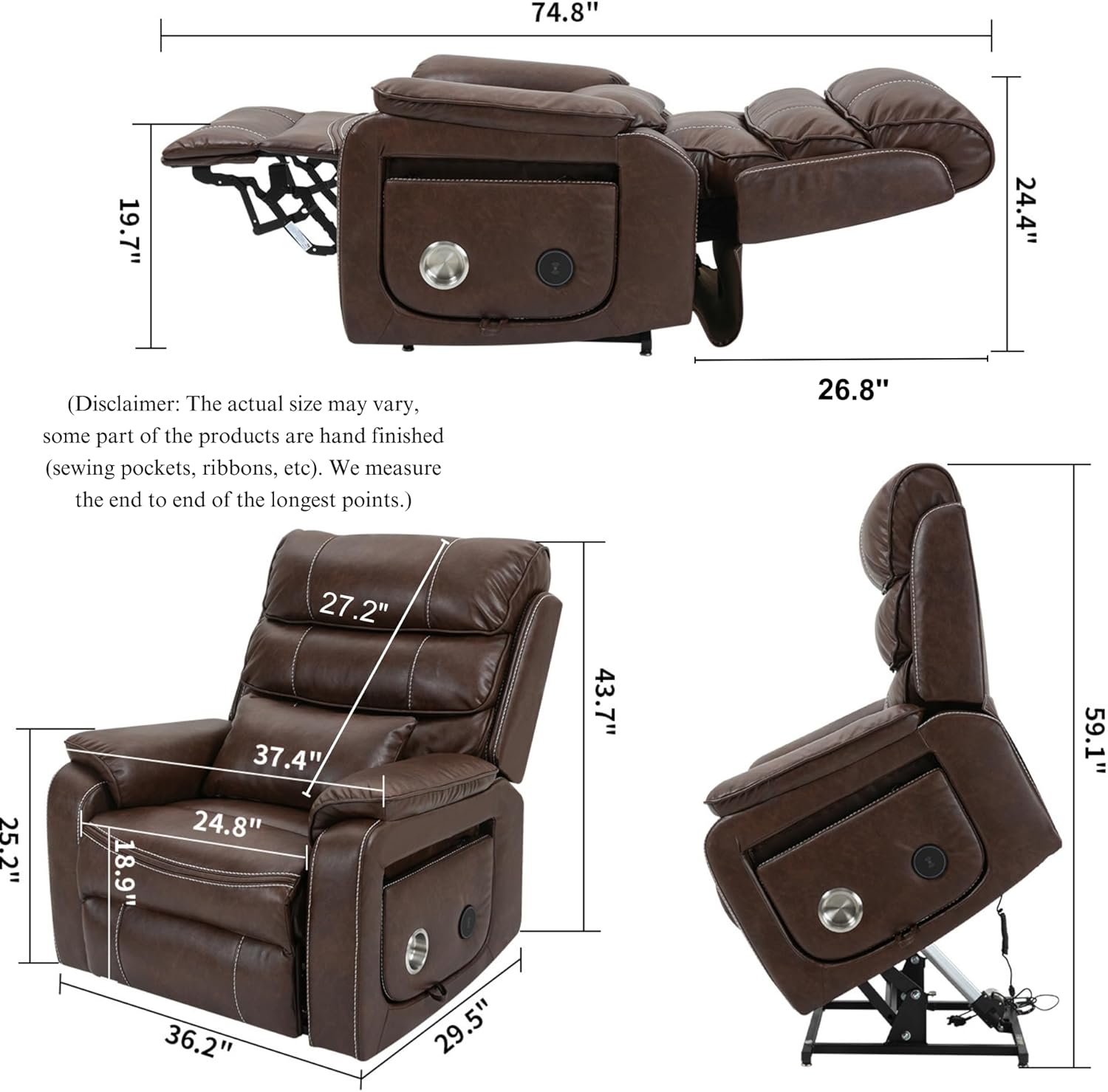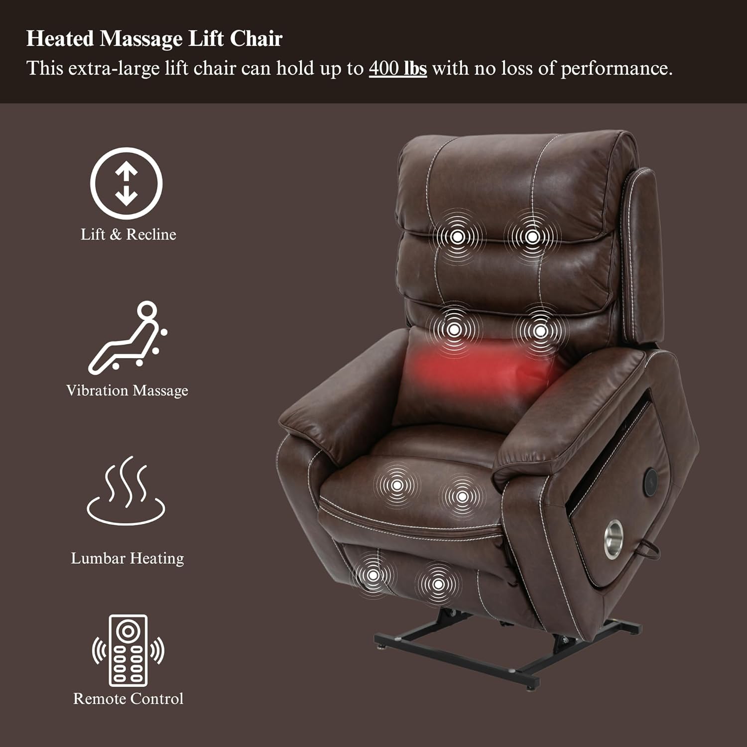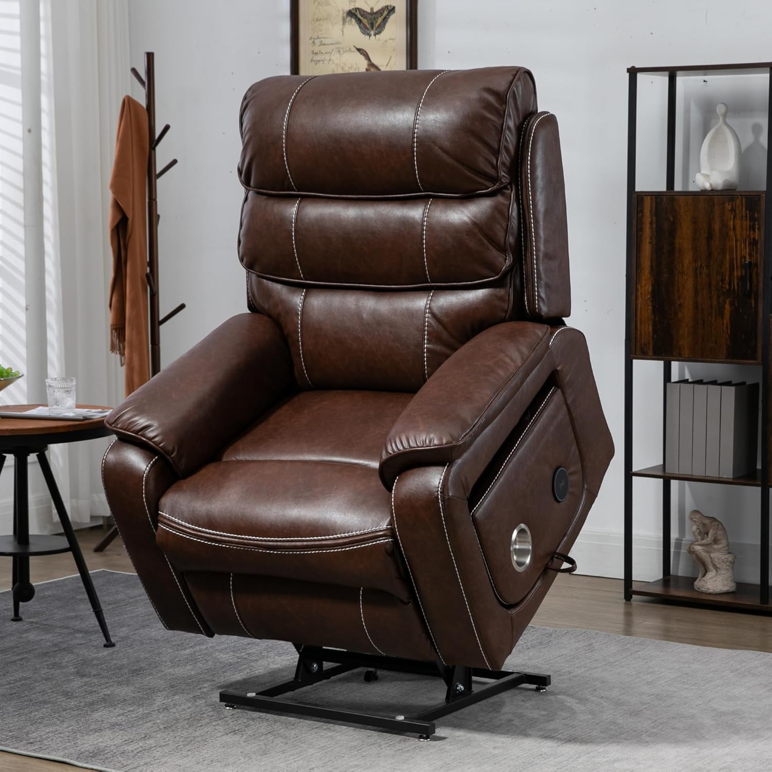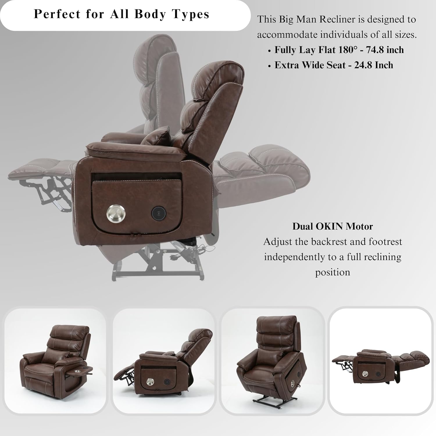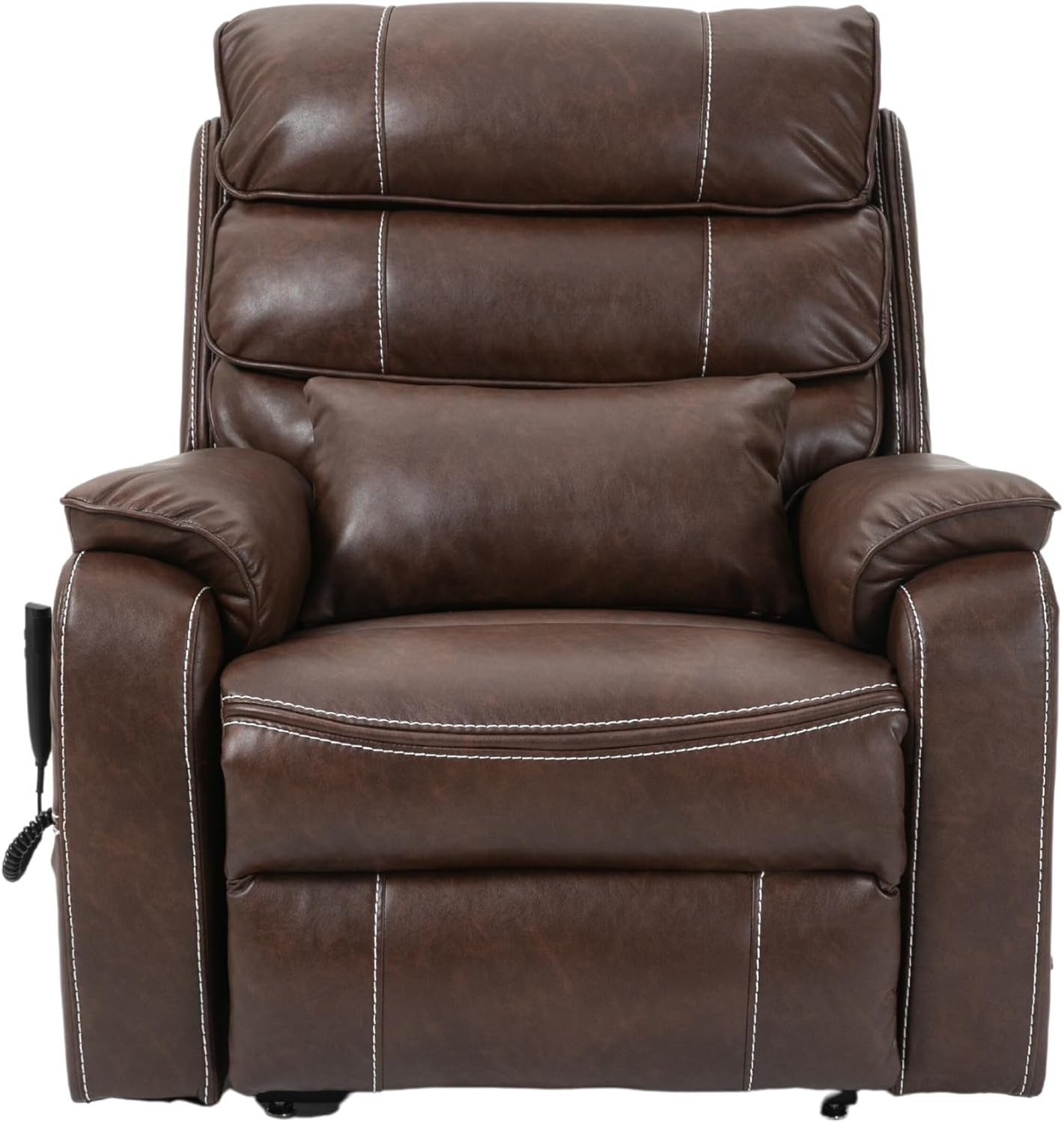 Pinnacle Lay Flat Recliner with Lumbar Pillow - Fold Out Tray Cup Holder & Wireless Phone Charger - Dual Motor Lift Chair for Sleeping - Big Tall 400 lbs Capacity (Brown Breathable Faux Leather)