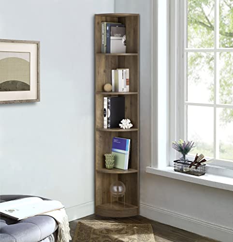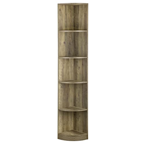 ICE ARMOR 5 Tier Corner Bookcase Wooden Display Bookshelf Storage Rack Multipurpose Shelving Unit for Living Room Home Office in White Wood