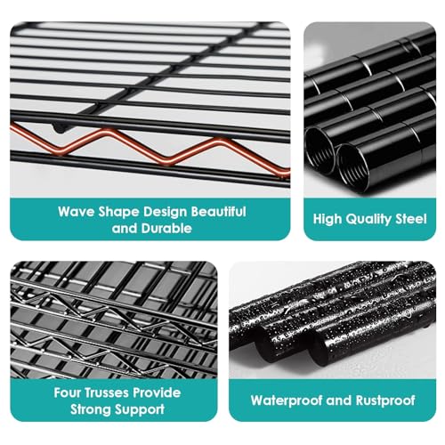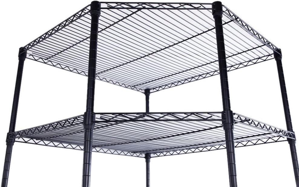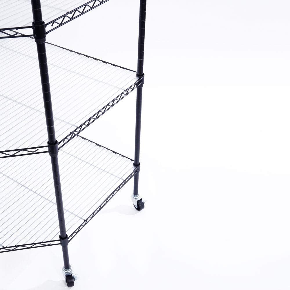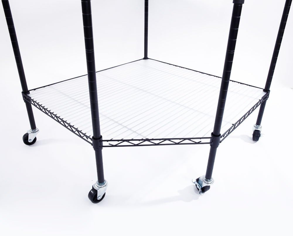 26.77" x 26.77" x 70.87" Corner Shelf with Wheels, Metal Storage Wire Shelving Unit Corner Rack Corner Shelving,Free Standing Corner Storage Rack Display for Living Room,Bathroom,Kitchen (Black)