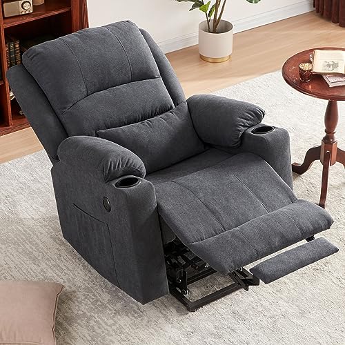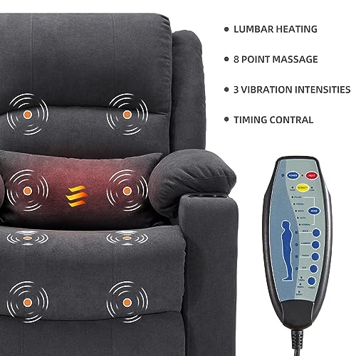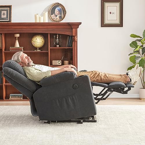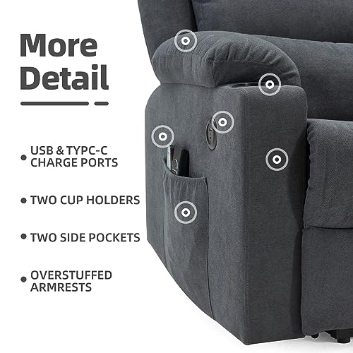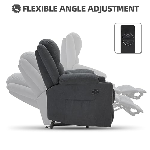 Lay Flat Triple Motor Power Lift Recliner Chair with Adjustable Headrest for Elderly People, Electric Recliner with Infinite Positions, Heat and Massage Chair Recliner, USB & Type C Dark Grey