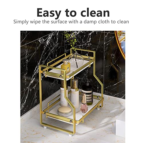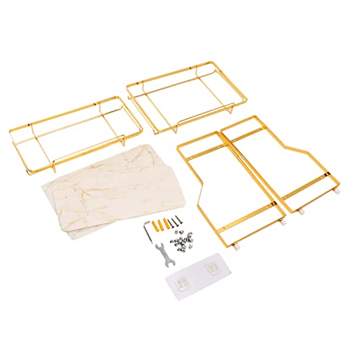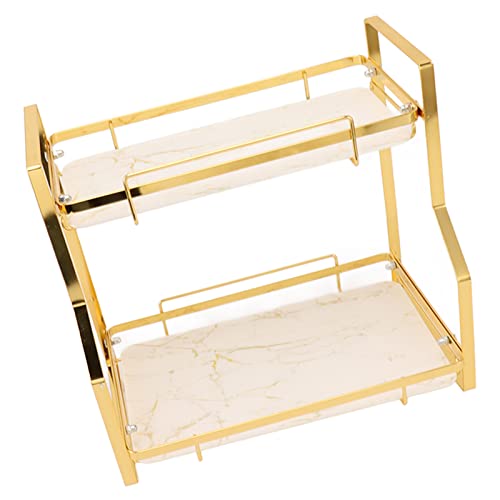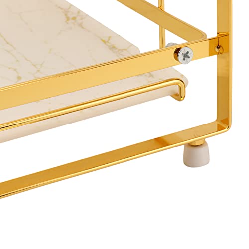 YWBL-WH Bathroom Storage Shelf Wall Mounted Corner Organizer Standing Rack for Living Room Bedroom Kitchen, White and Gold, Iron Material, Easy to Clean (2 Tier)