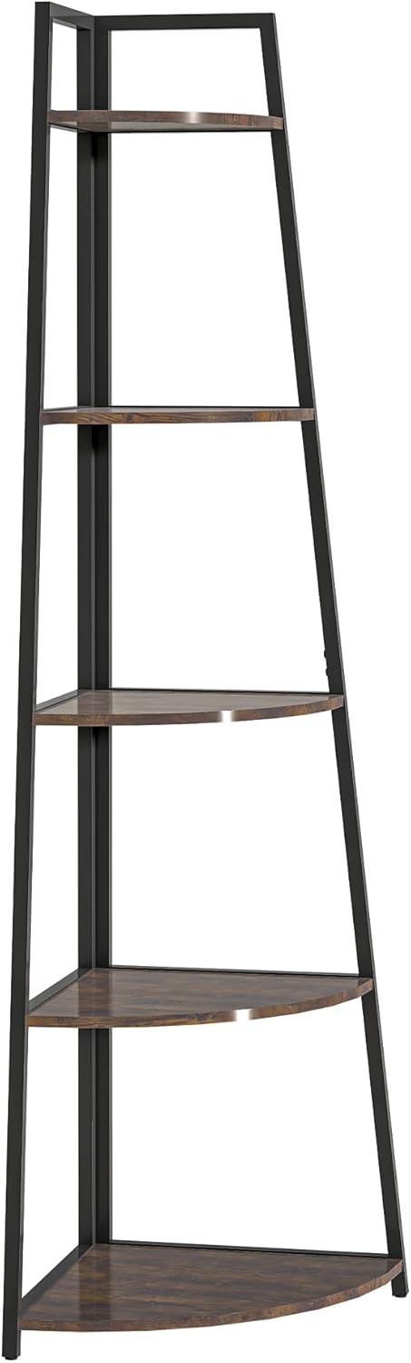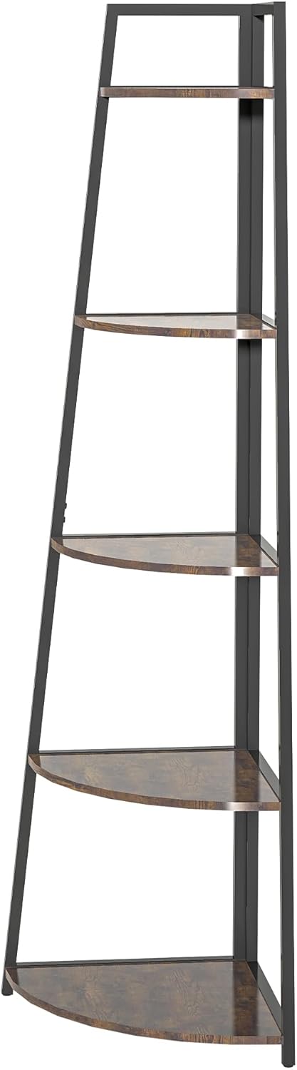5 Tier Corner Shelf - Corner Bookshelf-Corner Cabinet-Corner shelves-70 Tall Display Organizer Storage Stand - Multipurpose Shelving Unit for Living Room, Home Office - Rustic Brow