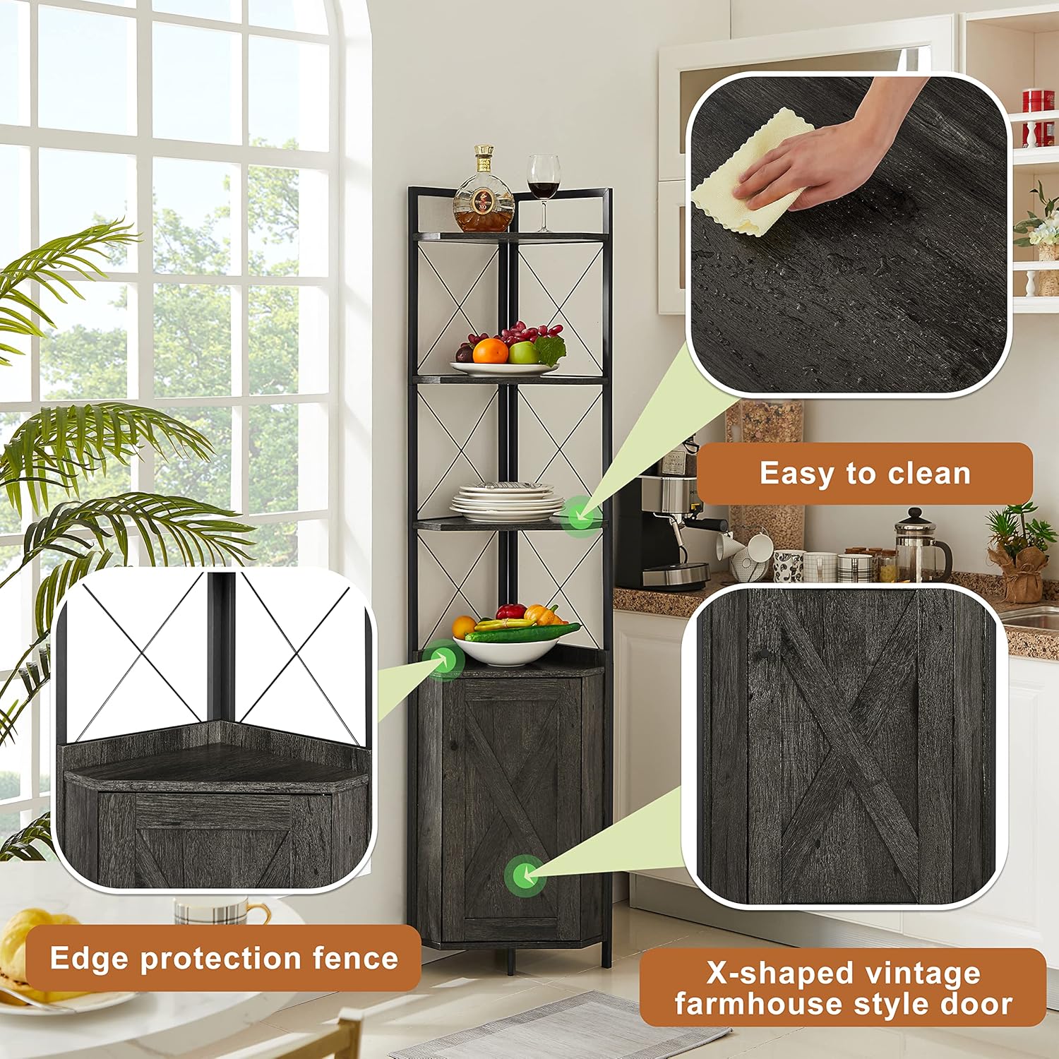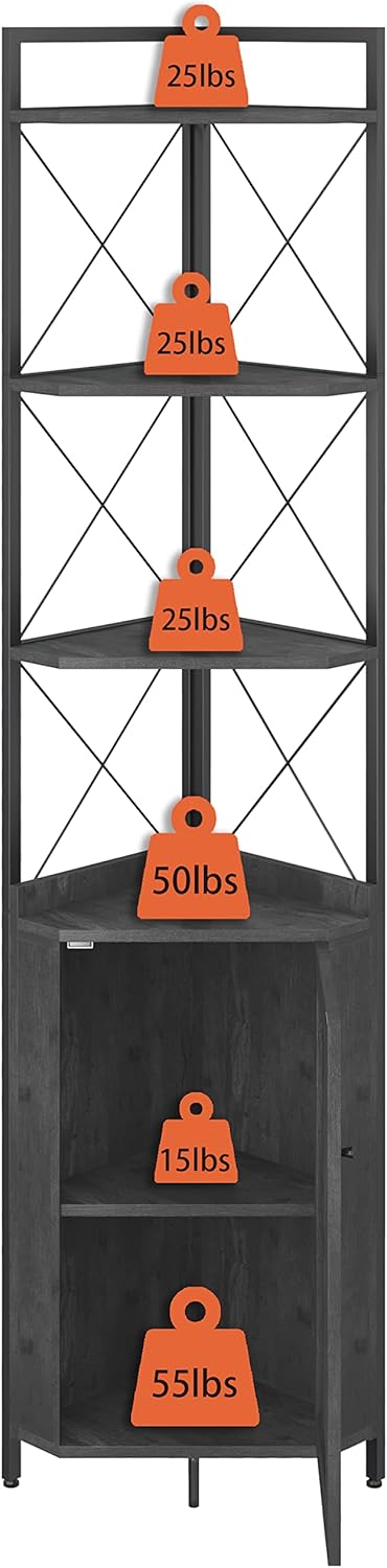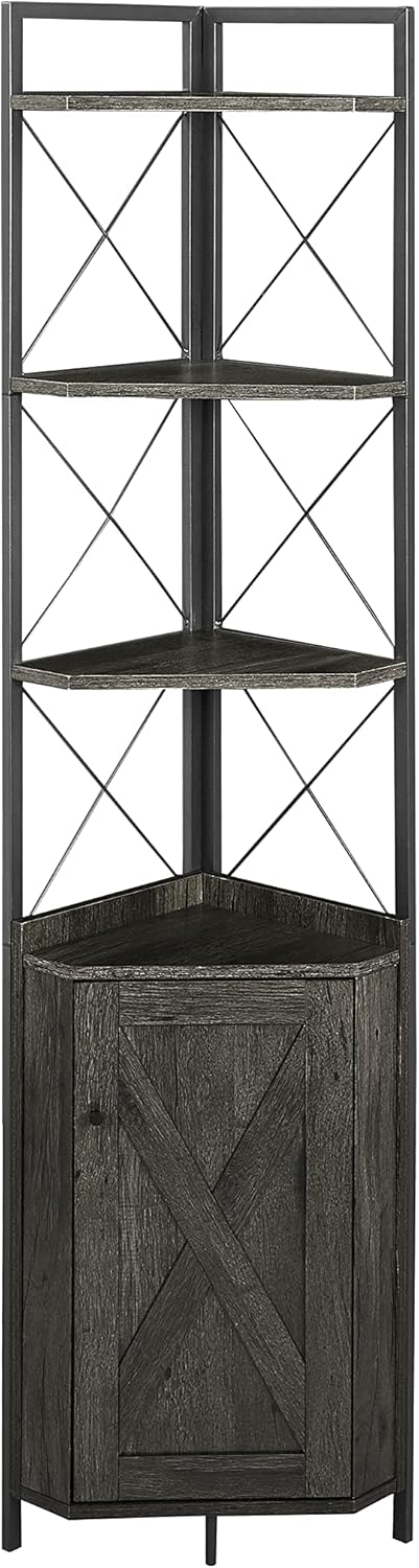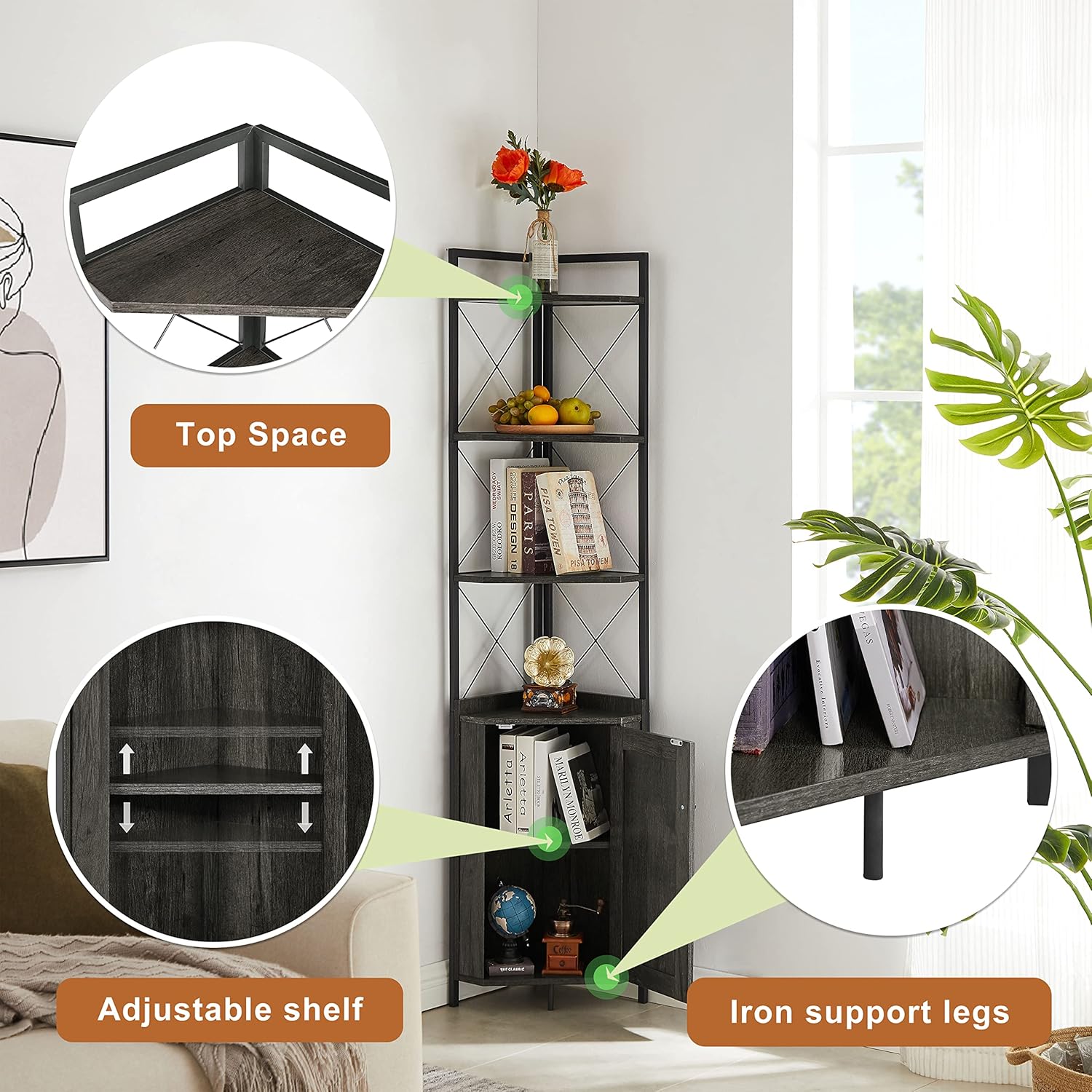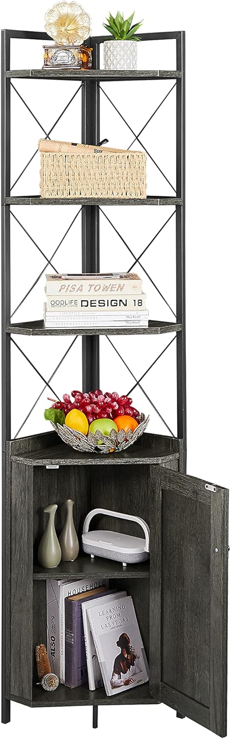 Corner Shelf 5-Tier with Cabinet, Free-Standing Storage Rack Living Room Display Shelf, Wall Corner Bookshelf Multi Unit Organizer, for Bedroom, Living Room, Kitchen, Bathroom, Dark Grey