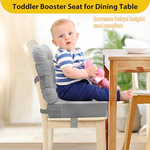 Booster Seat for Kitchen Chair - 2Pcs Toddler Booster Seat for Dining Table Adjustable Safety Belts & Non-Slip Bottom, PU Waterproof Easy Cleaning Booster Chair Cushion