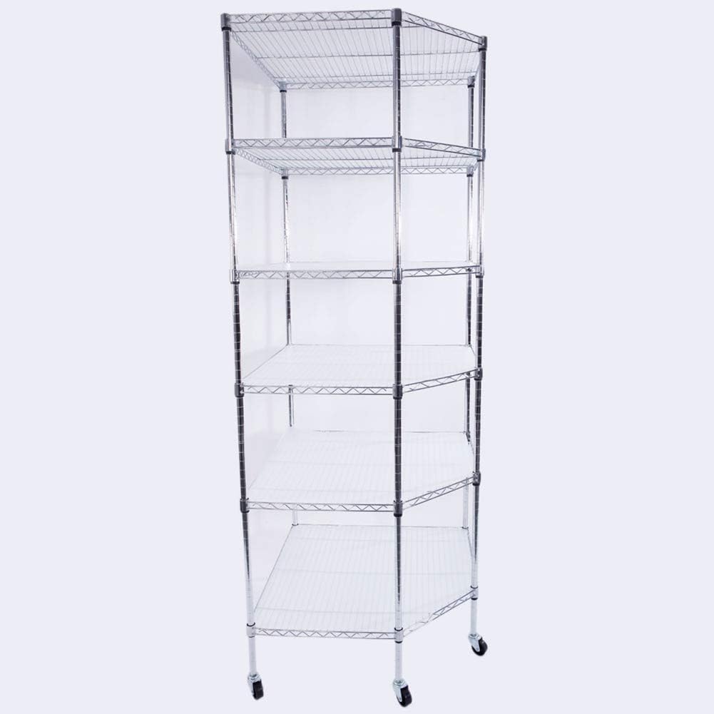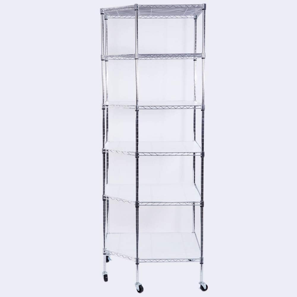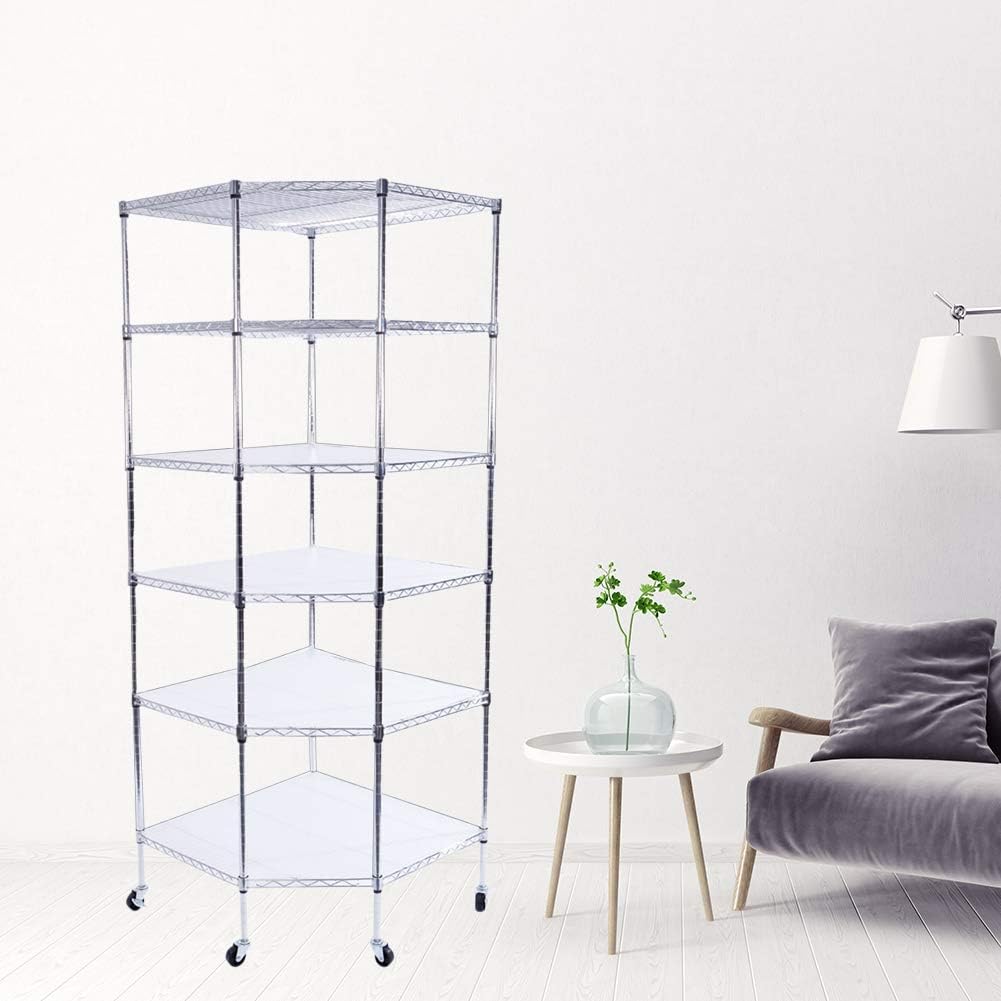 6 Tiers Corner Shelf, Adjustable Metal Storage Wire Shelving Unit Corner Rack Corner Shelving with Wheels for Kitchen, Bathroom and Living Room