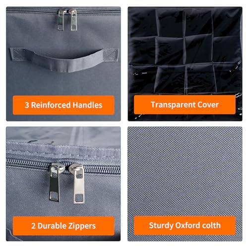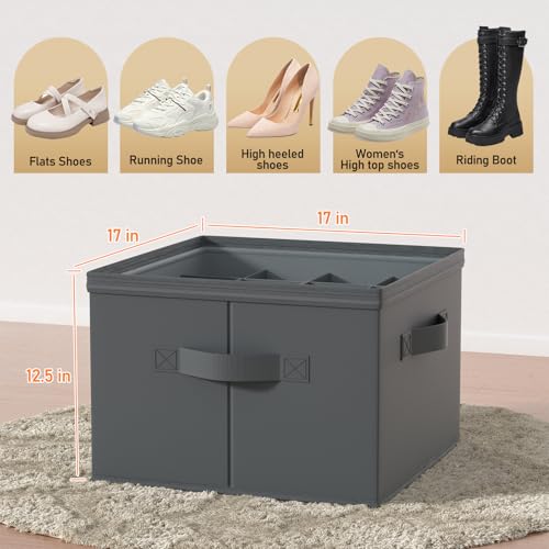 Shoe Organizer for Closet - Fabric Shoe Organizer with Clear Cover, Adjustable Dividers for Shoe Storage, 1-Pack, Space-Saving Shoe Organizer Closet Fits up to 16 Pairs (Gray)