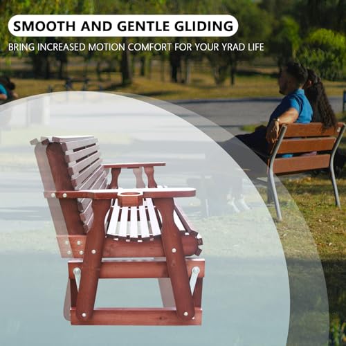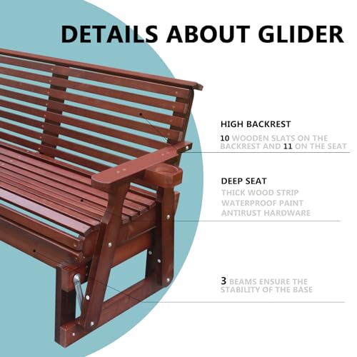 5FT Heavy Duty 800 LBS Porch Glider, Outdoor Glider Bench with Roll Back Pressure Treated with 2 Cupholders and Deep Contoured 2-Seater for Outside Patio, Yard, Balcony, Porch,Dark Brown