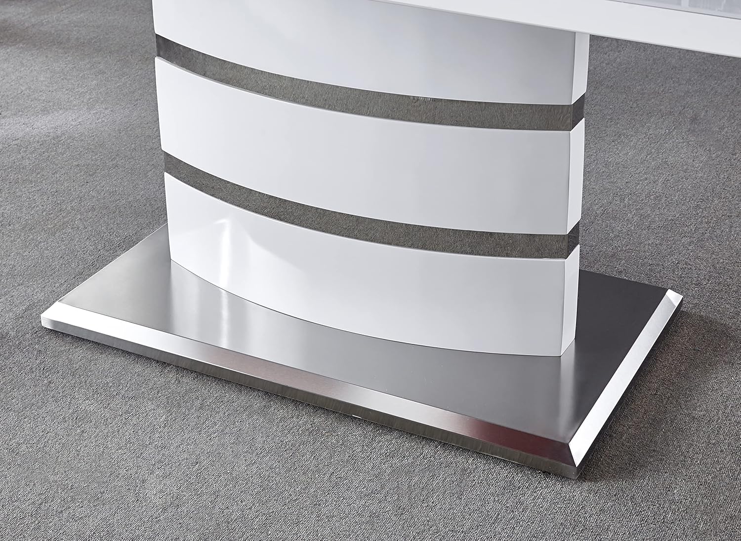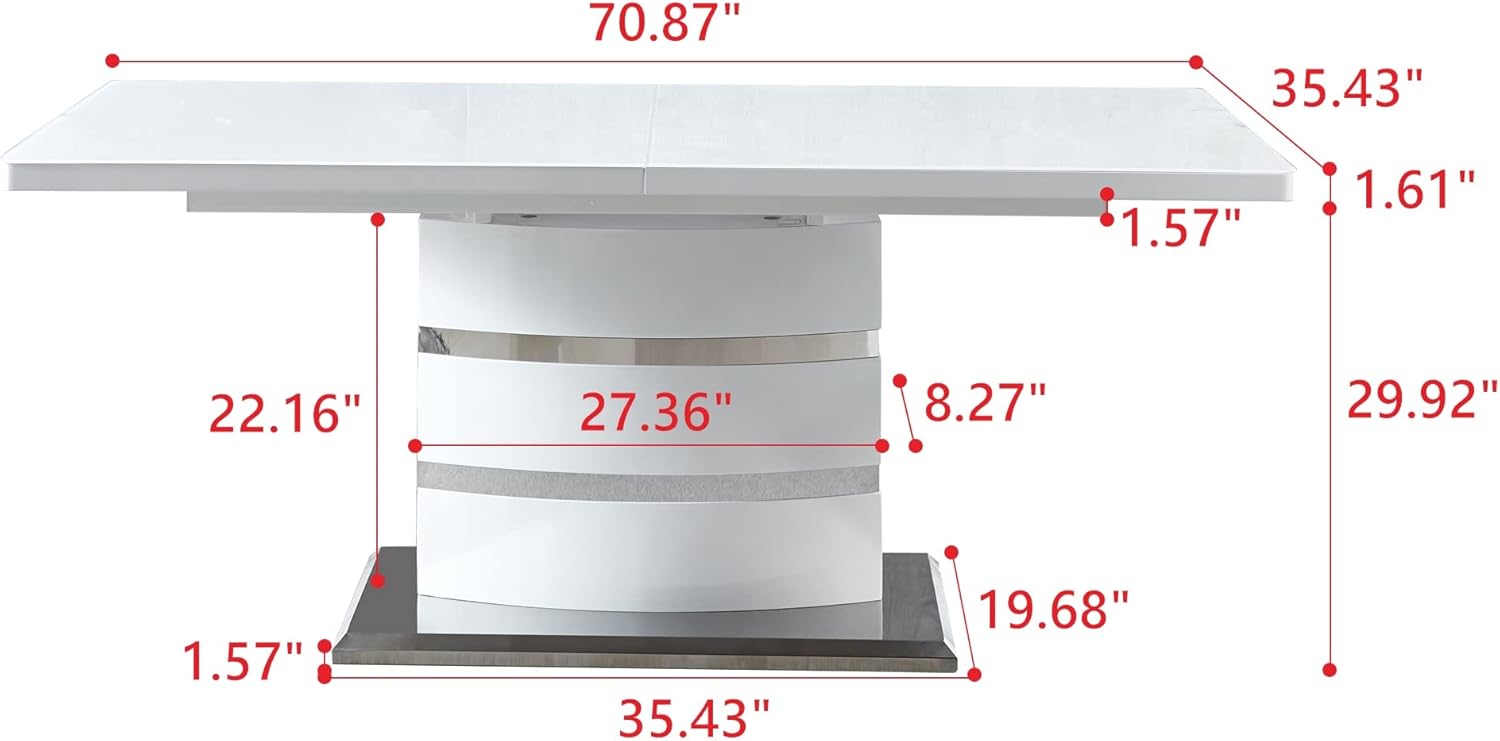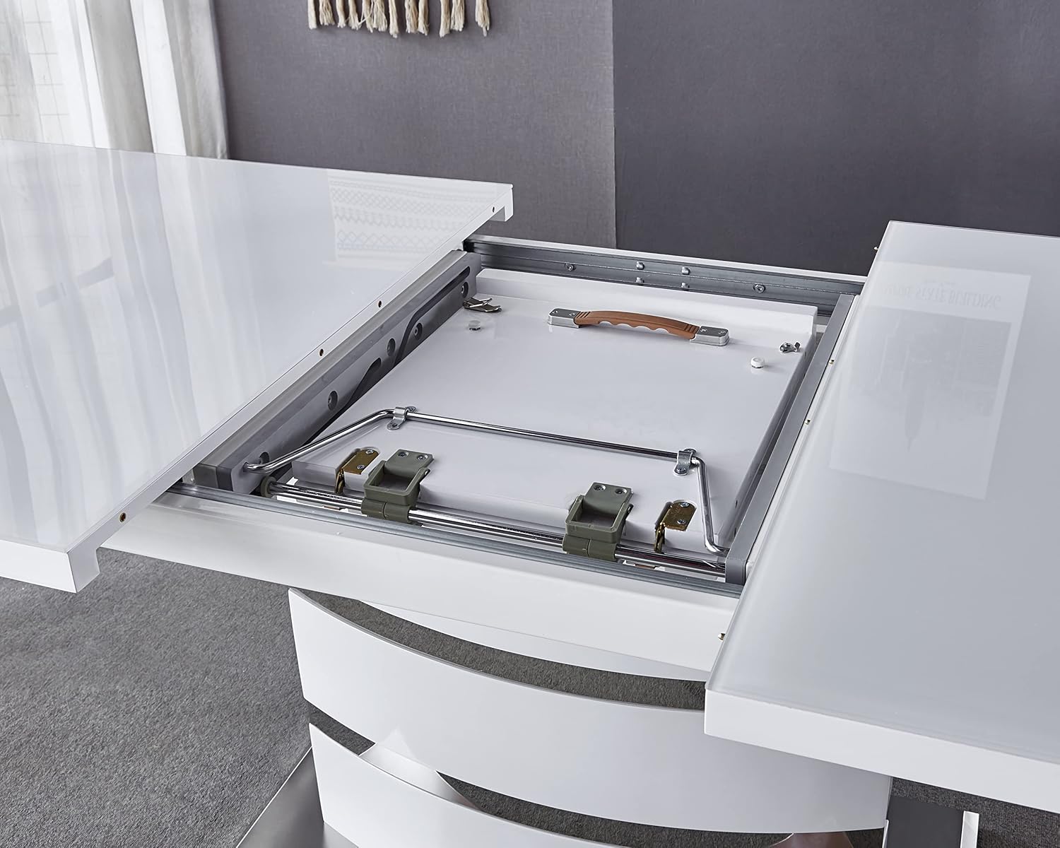 Modern Glossy Extendable Dining Tables, Expandable MDF Top Table w/Butterfly Leaf & White High Gloss Lacquer MDF Base w/Stainless Steel, 8 to 12 Person Dining Room Table for Kitchen (B)
