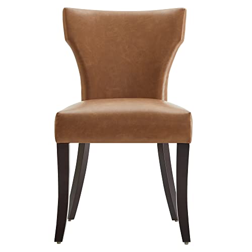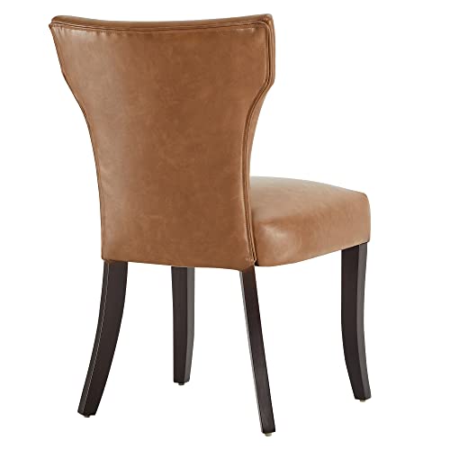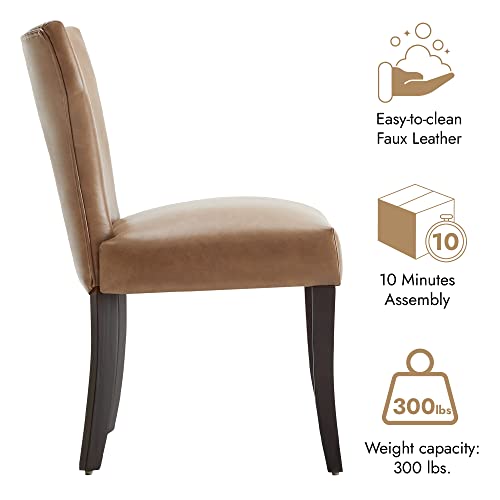 Watson & Whitely Upholstered Kitchen & Dining Room Chairs with Low Back, Faux Leather Dining Chairs with Solid Wood Legs, Set of 2, Saddle Brown