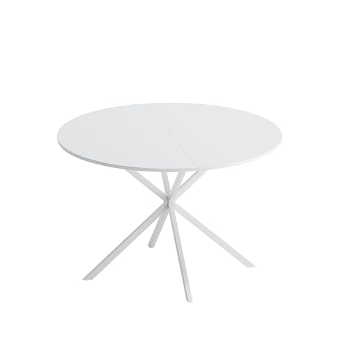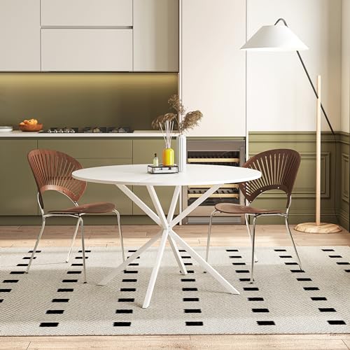 31.5'' Modern Round Wood Dining Table with Black Table Top &Matte Finish Iron Cross Legs for Living Room Dining Room Kitchen (Black3)