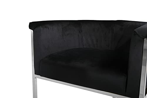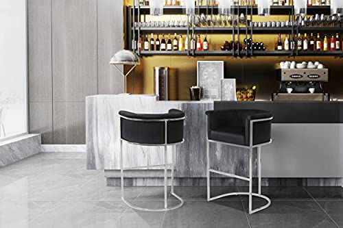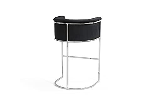 Finley Bar Stool Chair Velvet Upholstered Rolled Shelter Arm Design Half-Moon Chrometone Solid Metal U-Shaped Base, Modern Contemporary, Black