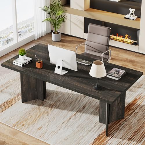 Tribesigns 63-inch Executive Desk, Vintage Office Computer Desk with Large Tabletop, Farmhouse Wood Writing Conference Table Workstation for Home Office, Study, Dark Gray