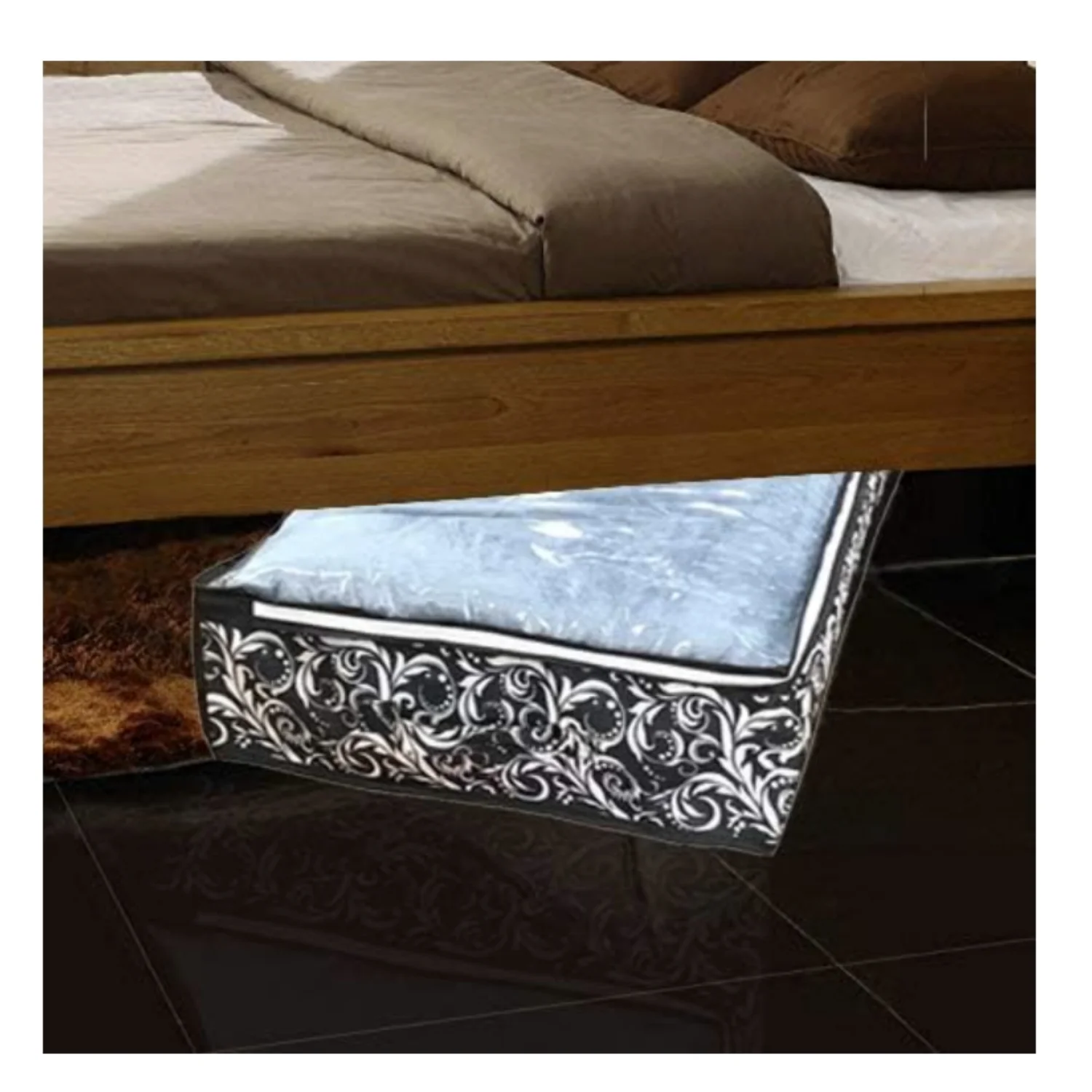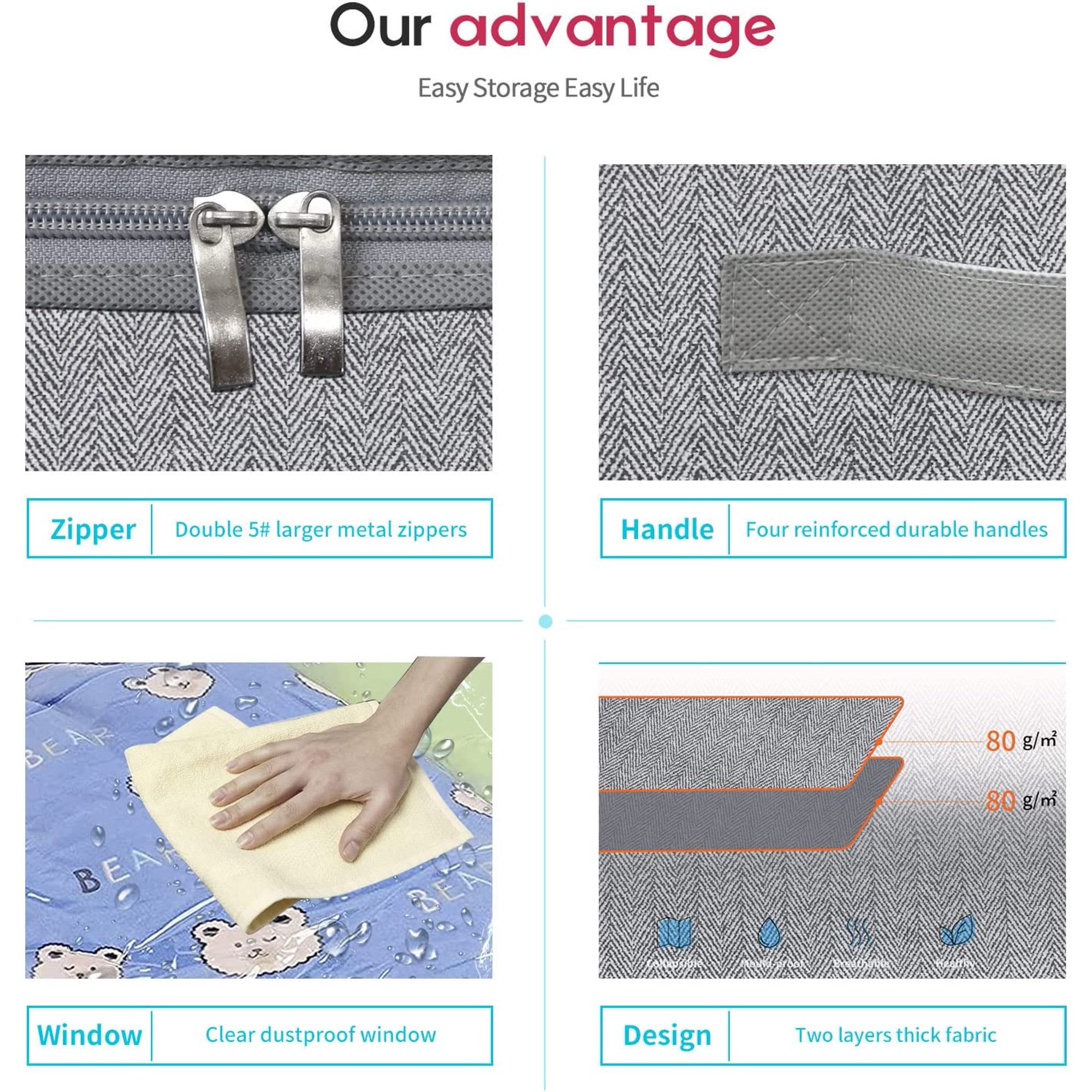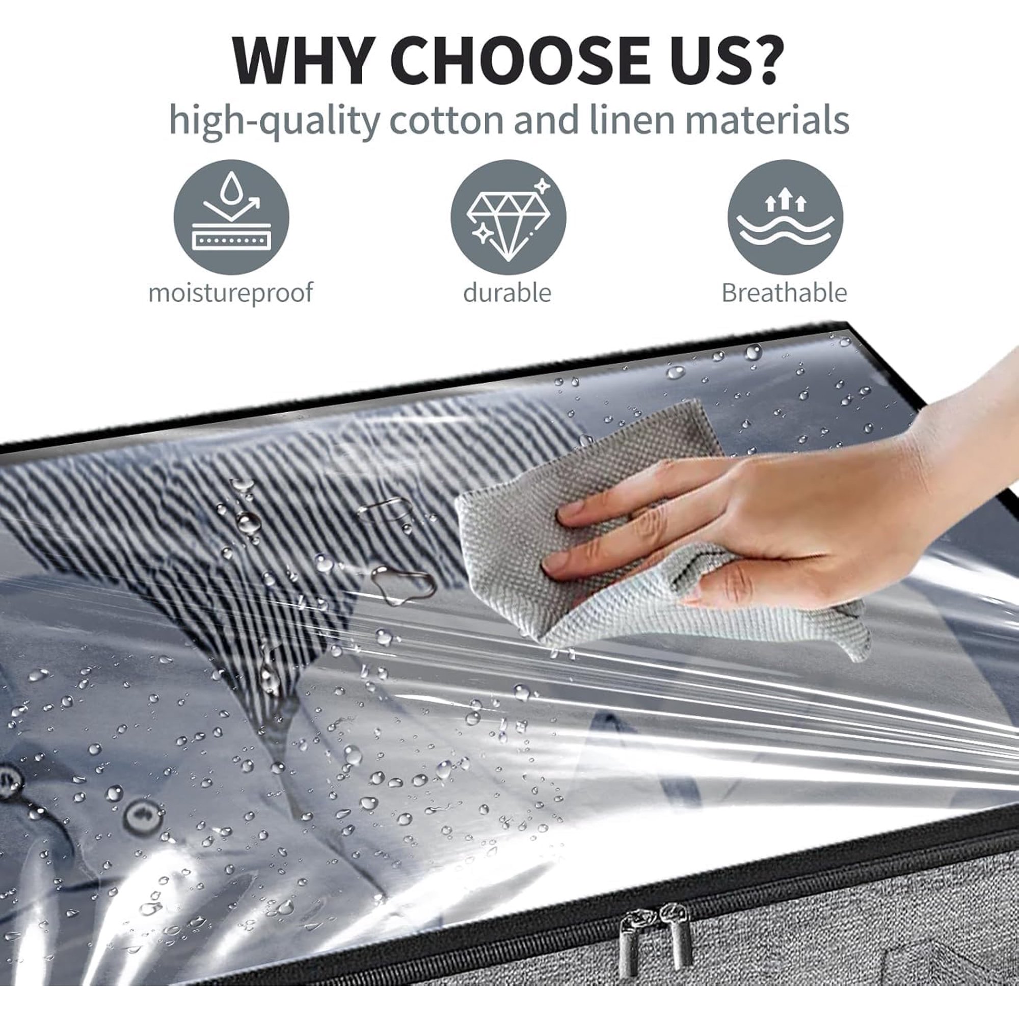 Foldable Underbed Bags - Blankets Clothes Comforters Storage Bag Breathable Zippered Organizer for Bedroom with Clear Window