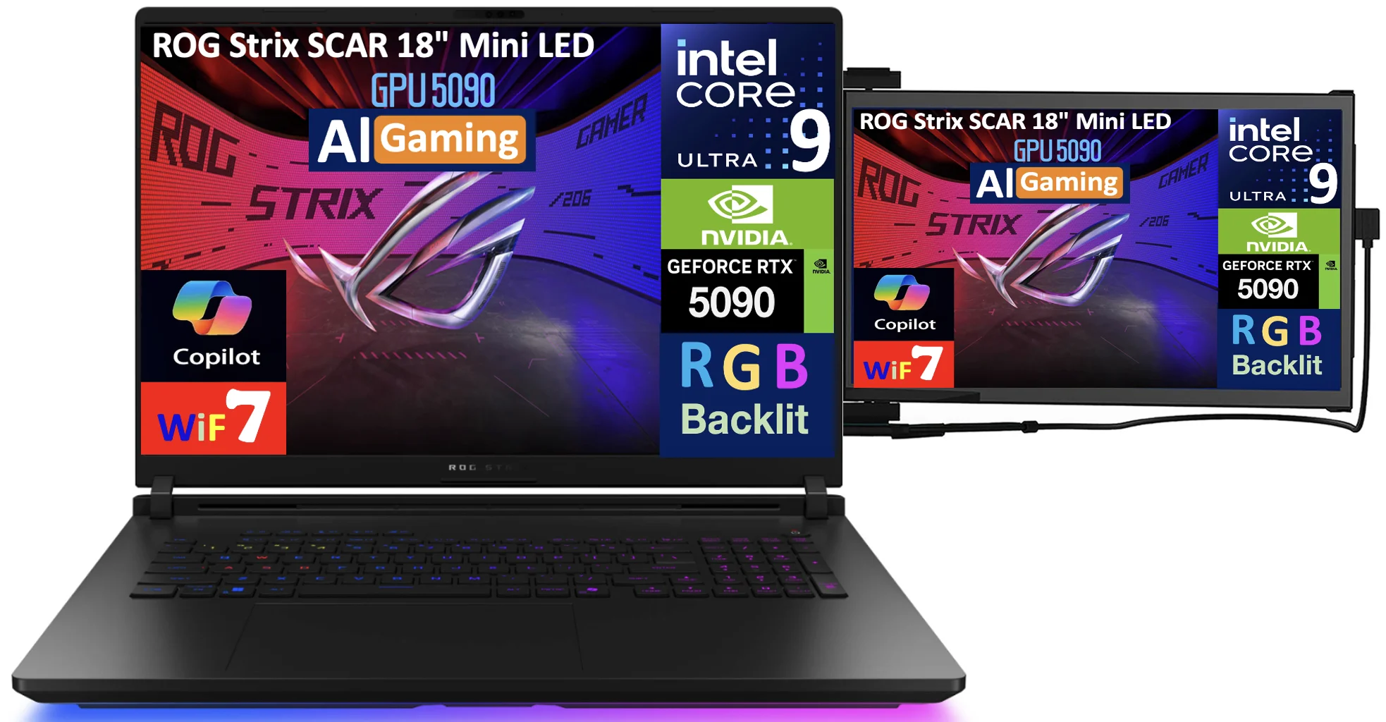 ASUS ROG Strix SCAR AI Gaming Laptop 18in 240Hz Mini LED WQXGA Display (Intel Ultra 9- 275HX, NVIDIA GeForce RTX 5090 24GB, 32GB DDR5, 2x8TB PCIe SSD (16TB), RGB KB, Win 11 Pro) w/Duex Max DS Monitor