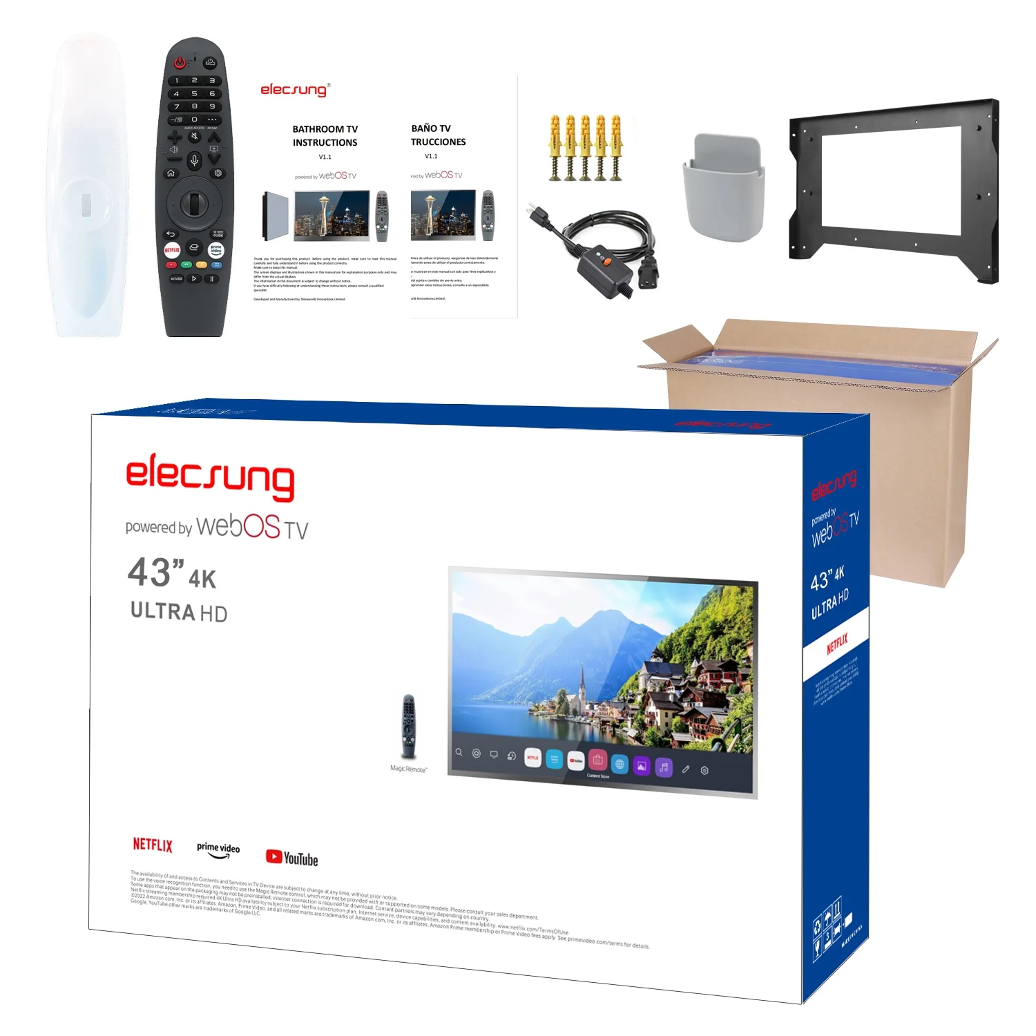 Elecsung 43-inch Waterproof Smart Mirror TV, 4K Picture Size, with Built-in Alexa, WiFi, Bluetooth, ATSC