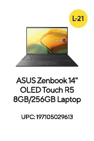 ASUS Zenbook 14” OLED Touchscreen Notebook, AMD Ryzen 5 7530U, 8GB, 256GB SSD, Windows 11