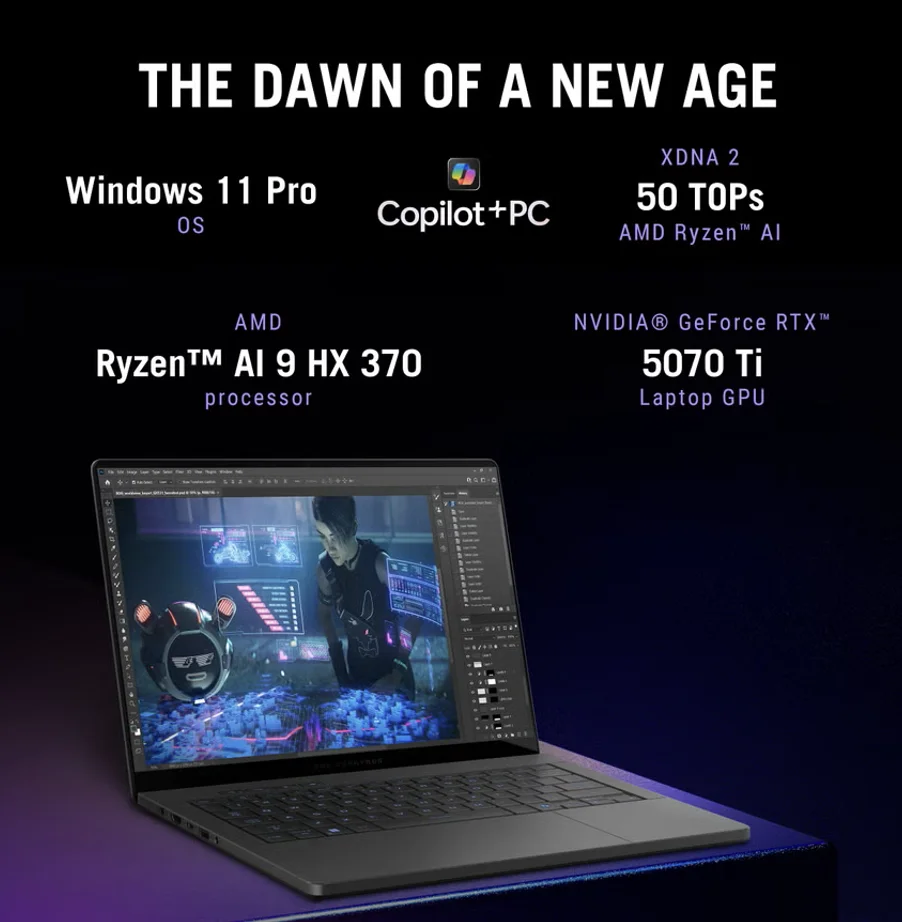 ASUS ROG Zephyrus G14 AI Gaming Laptop 14.0in 120Hz 2.8K Display (AMD Ryzen AI 9 HX 370, GeForce RTX™ 5070 Ti 12GB, 32GB LPDDR5X, 4TB PCIe SSD, RGB KB, WiFi 7, Webcam, Win 11 Pro) w/USB-C Dock
