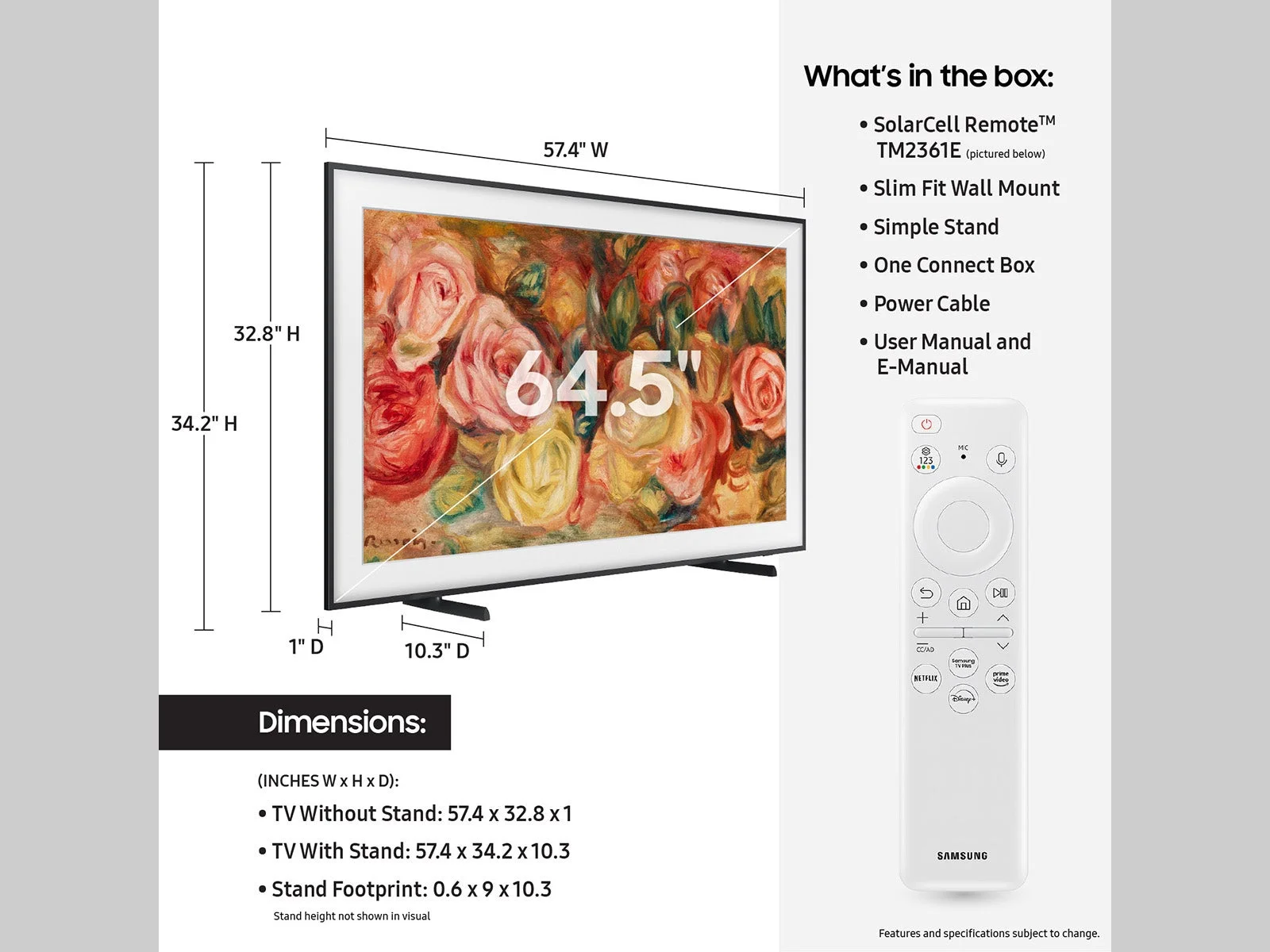 Open Box SAMSUNG 65” Class LS03D The Frame QLED HDR QN65LS03DAFXZA 2024