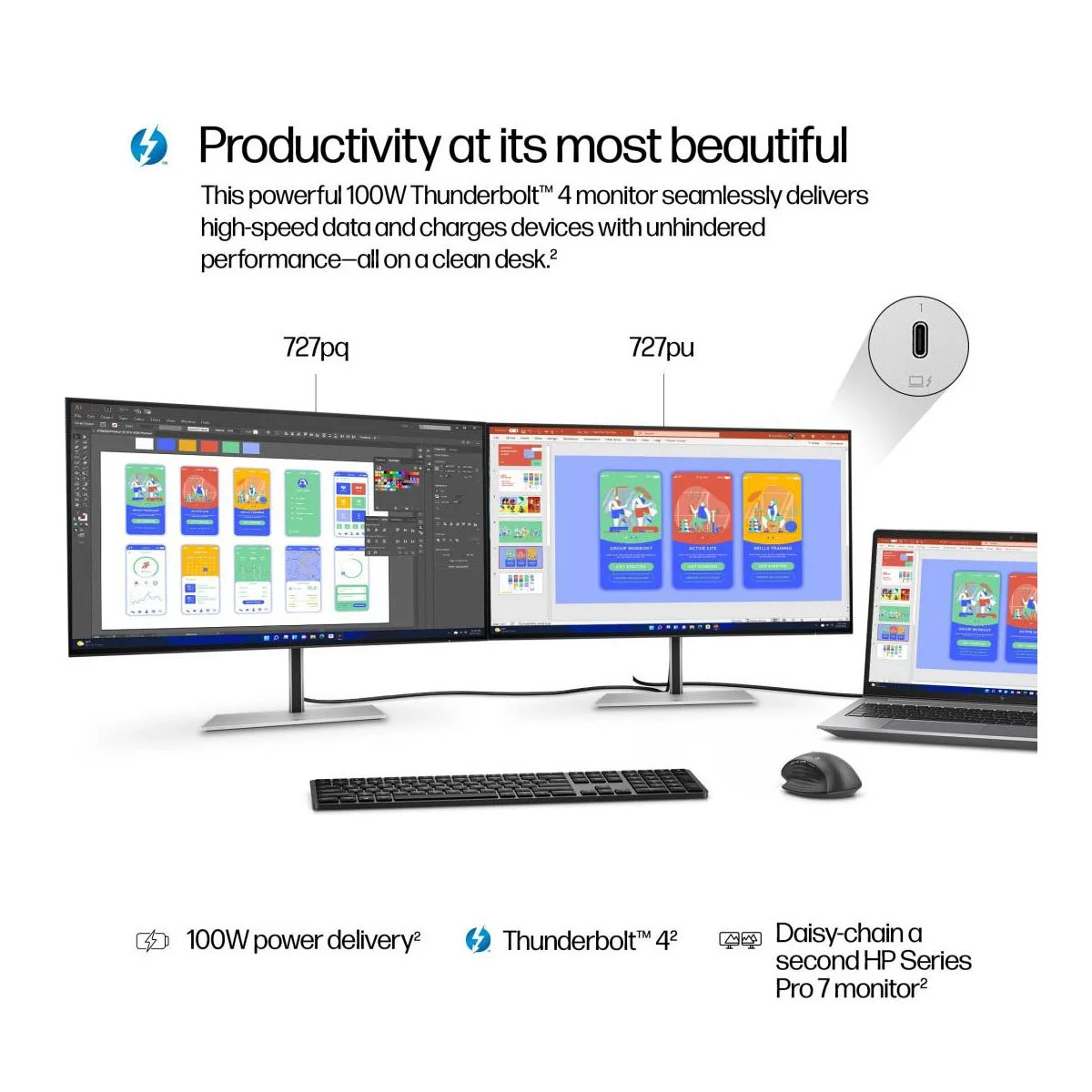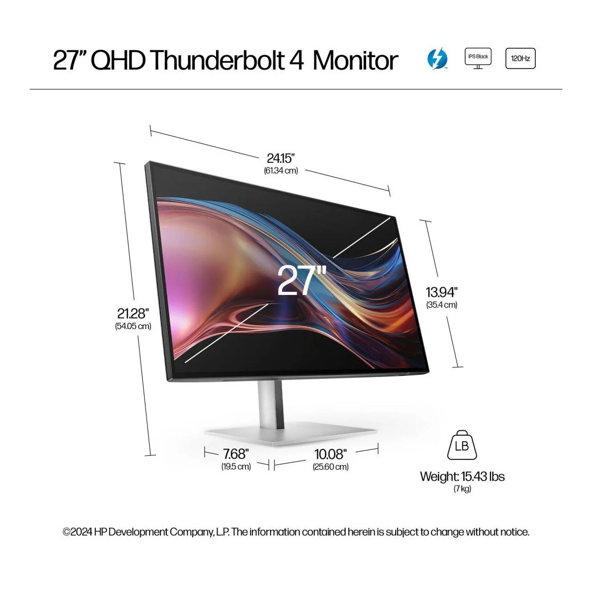 HP Series 7 Pro 727pu 27" 16:9 WQHD 120Hz IPS LCD Thunderbolt 4 Monitor, Natural Silver