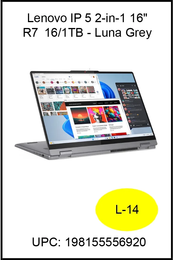 Lenovo IdeaPad 5 16" Touchscreen 2-in-1 Laptop, Ryzen 7, 16GB, 1TB SSD, 83DS0056US