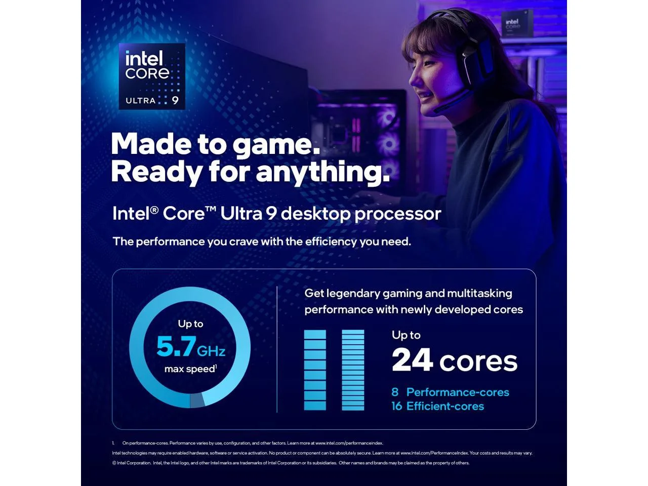 Intel Core Ultra 9 285K - Core Ultra 9 (Series 2) Arrow Lake 24-Core (8P+16E), LGA 1851, 125W Desktop Processor - BX80768285K