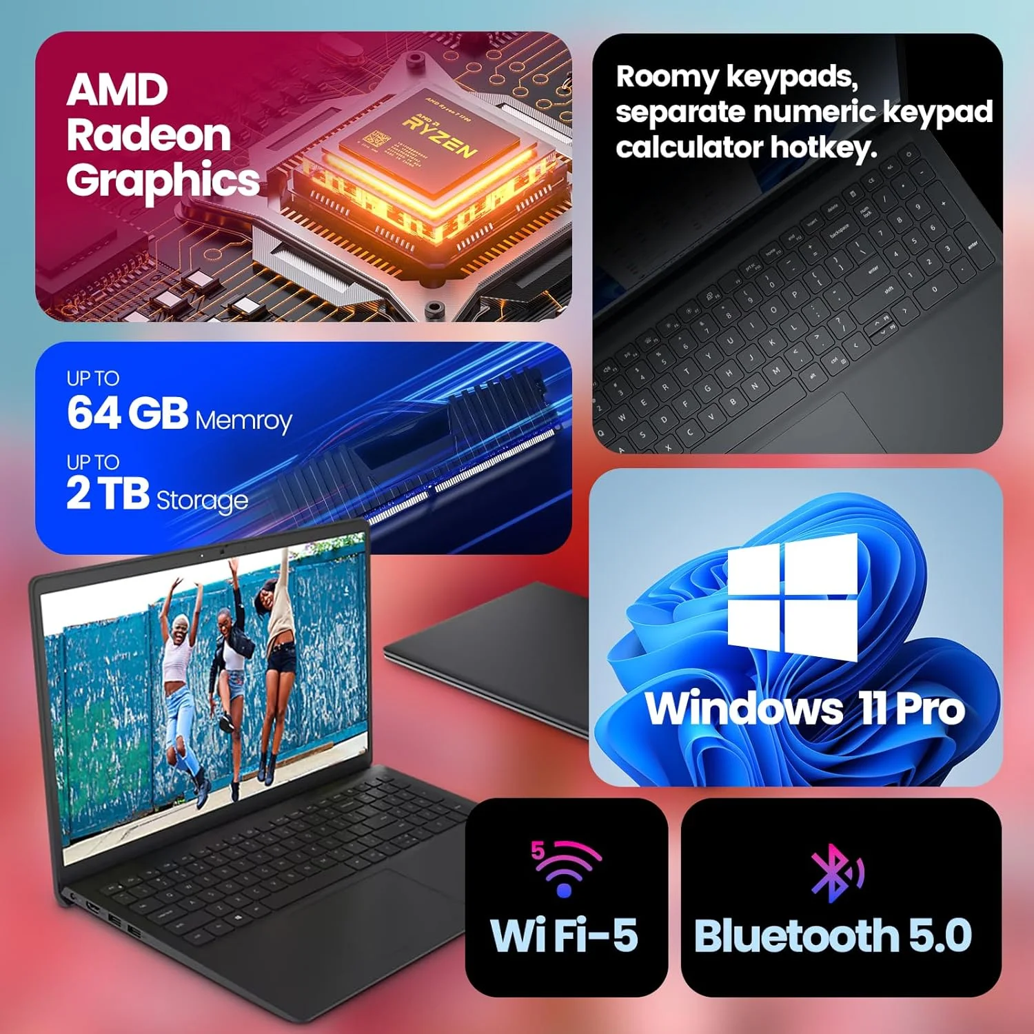 Dell Inspiron 15 3535 Touchscreen Business & Student Laptop Computer, AMD Ryzen 7 7730U, 64GB RAM, 1TB SSD, 15.6" FHD Display, Windows 11 Pro, Wi-Fi, Webcam