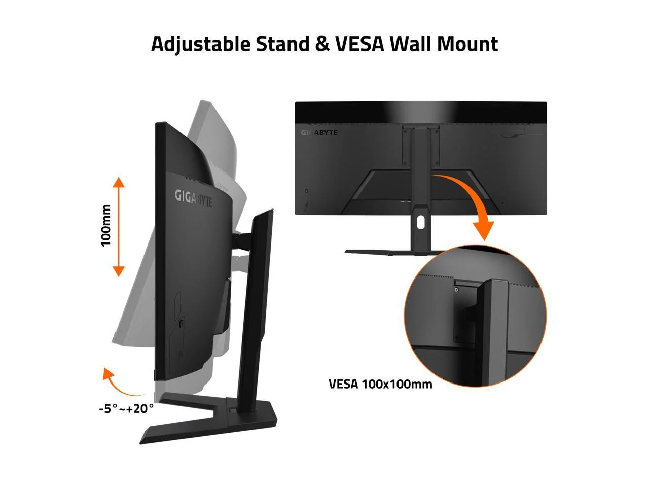 "GIGABYTE GS34WQC 34"" Curved Gaming Monitor, WQHD, 120Hz/OC 135Hz, 1ms, HDMI, DP - Black"