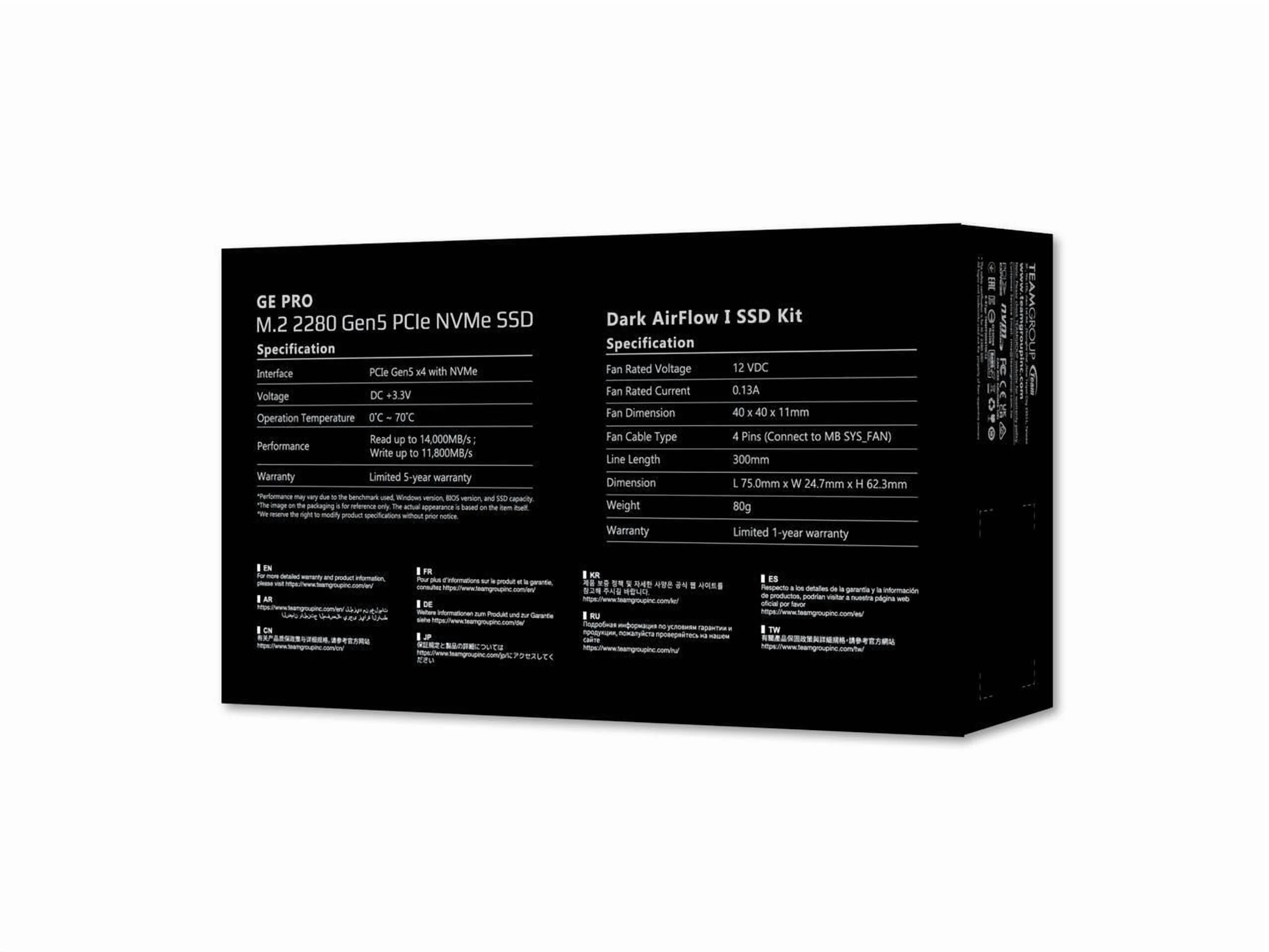 Team Group T-FORCE GE PRO M.2 2280 4TB PCIe Gen 5.0x4 with NVMe 2.0 3D NAND Internal Solid State Drive (SSD) with AirFlow 1 TM8FG3004T0C133