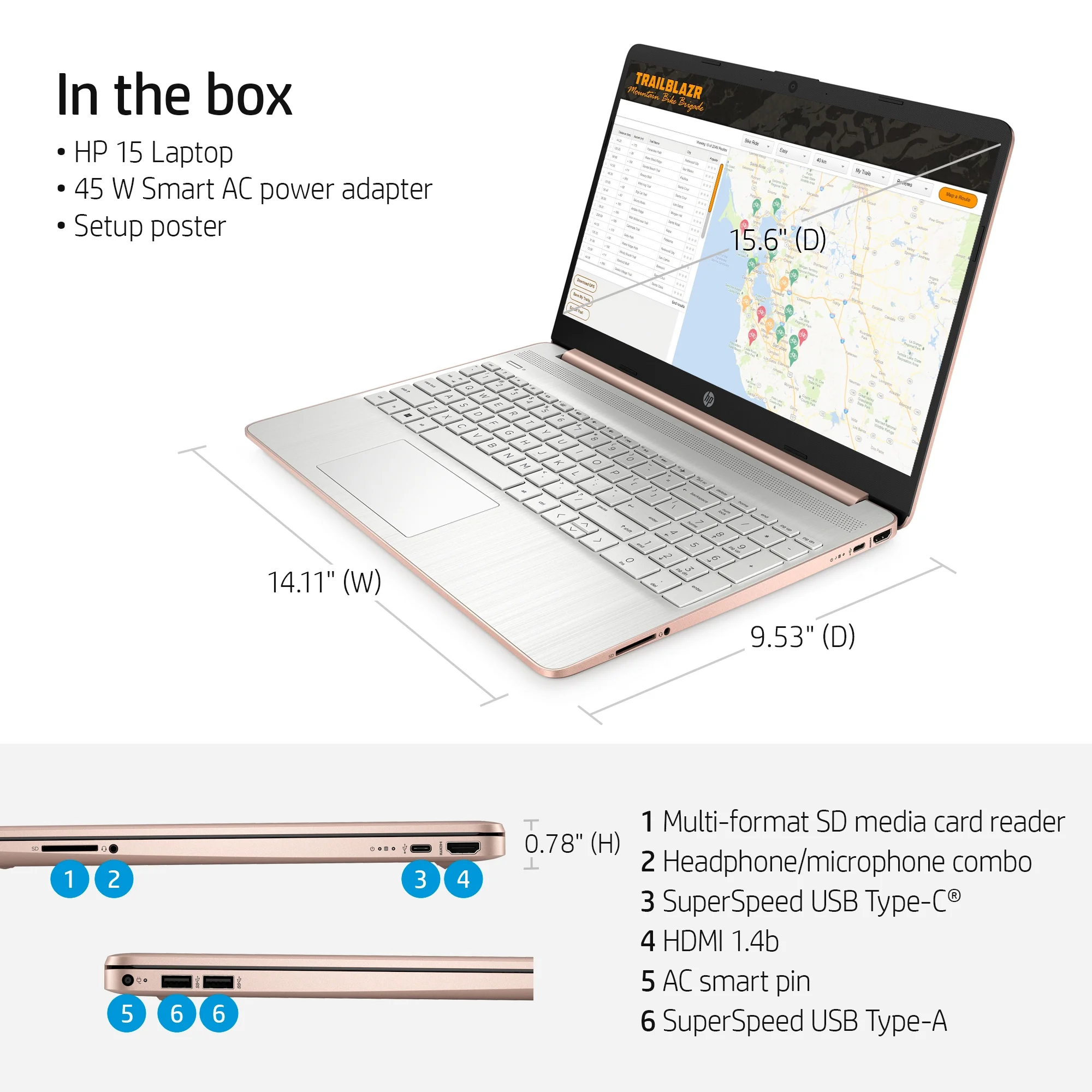 "HP 15.6"" FHD Laptop, AMD Ryzen 5, 8GB RAM, 256GB SSD, Rose Gold, Windows 11, 15-ef2130wm"