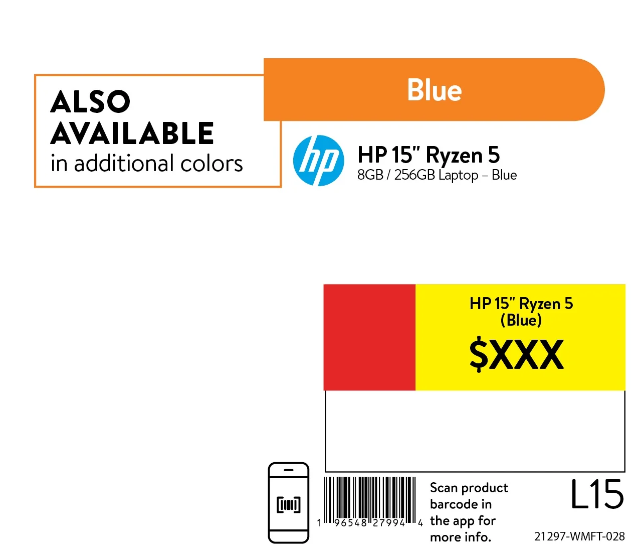 HP 15.6" FHD Laptop, AMD Ryzen 5 5500U, 8GB RAM, 256GB SSD, Windows 11 Home, Spruce Blue