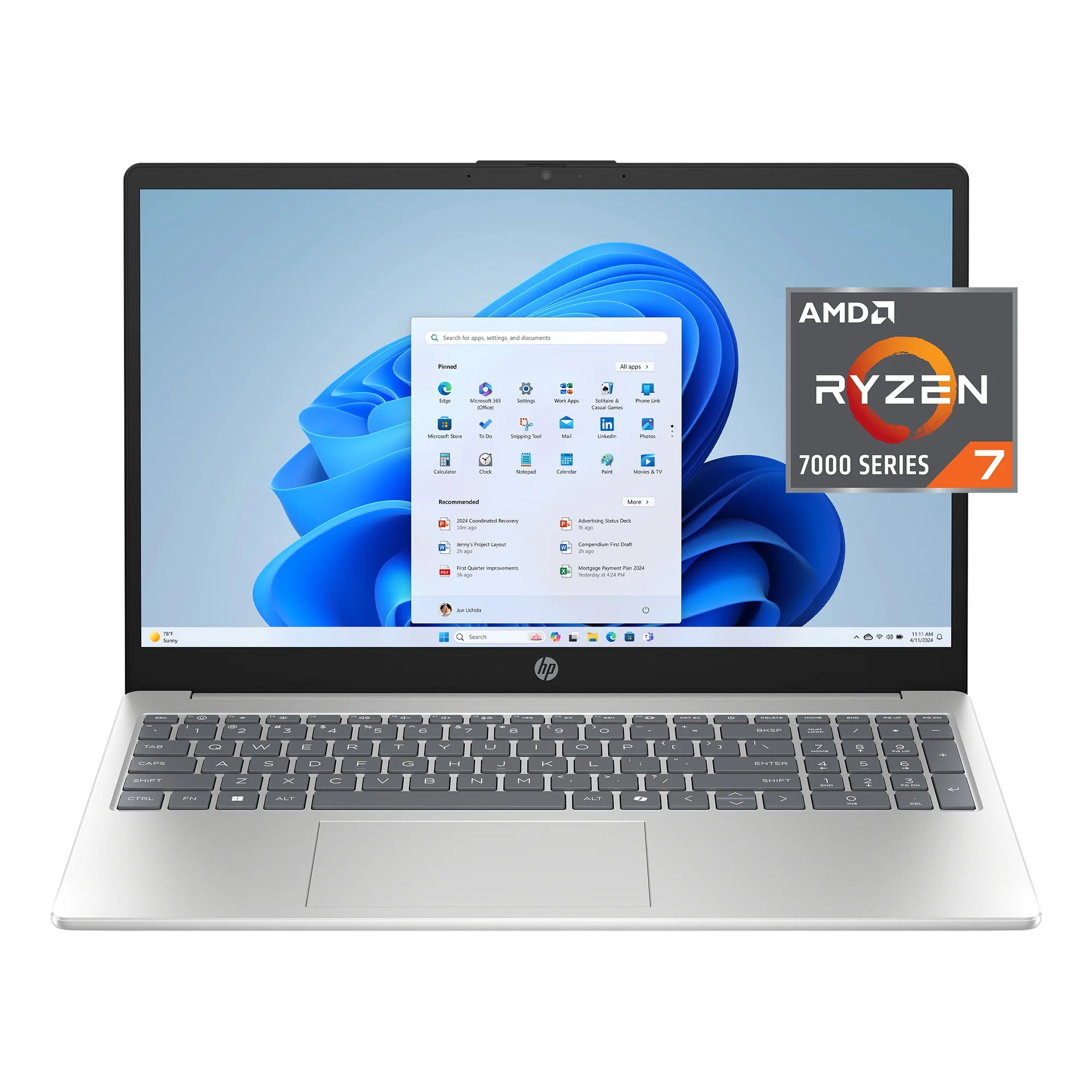 HP 15.6 inch FHD IPS Touch Windows Laptop AMD Ryzen 7 7730U 16GB 512GB SSD Natural Silver