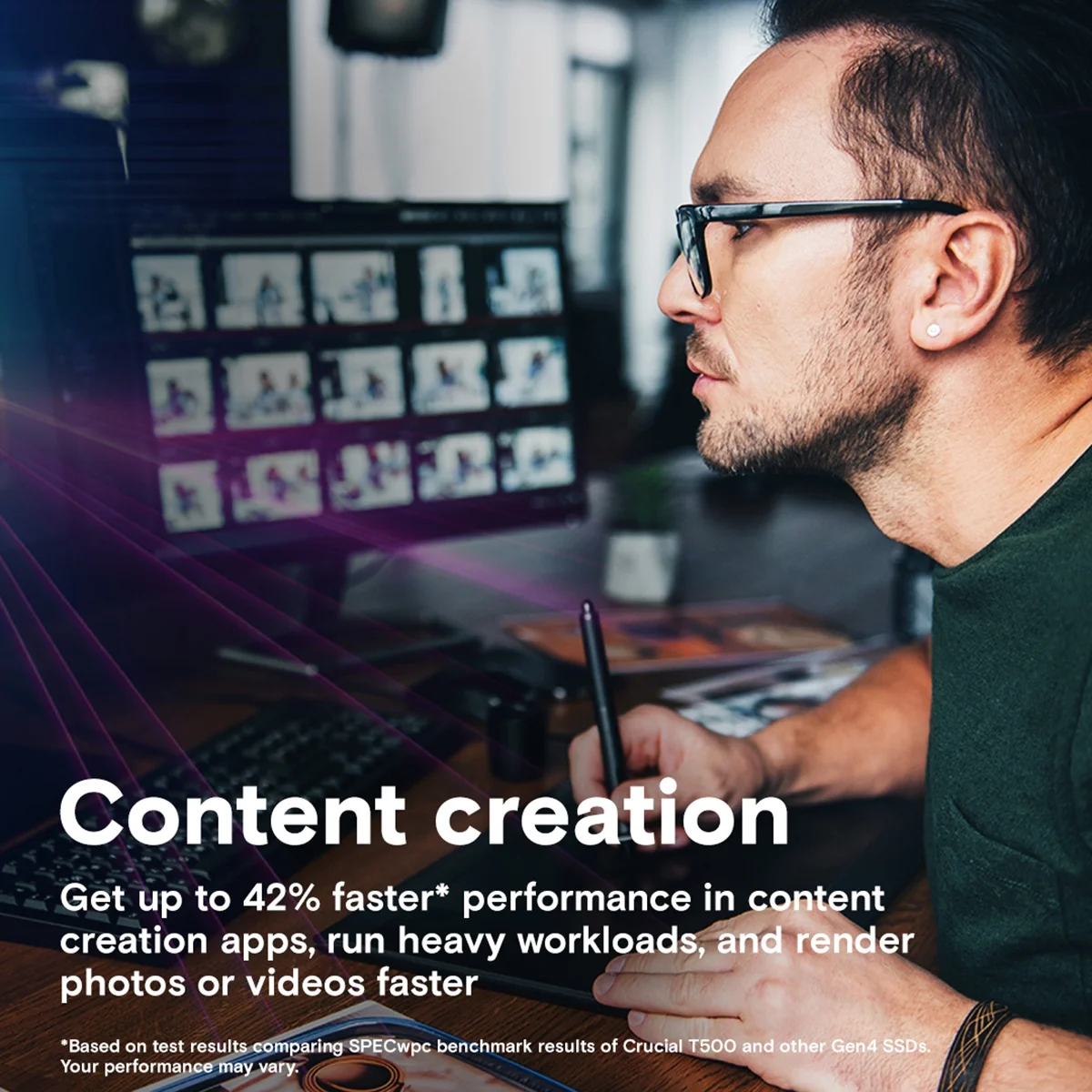 Crucial 2TB T500 Gen4 NVMe M.2 Gaming SSD, Up to 7400MB/s, Laptop & Desktop Compatible + 1mo Adobe CC