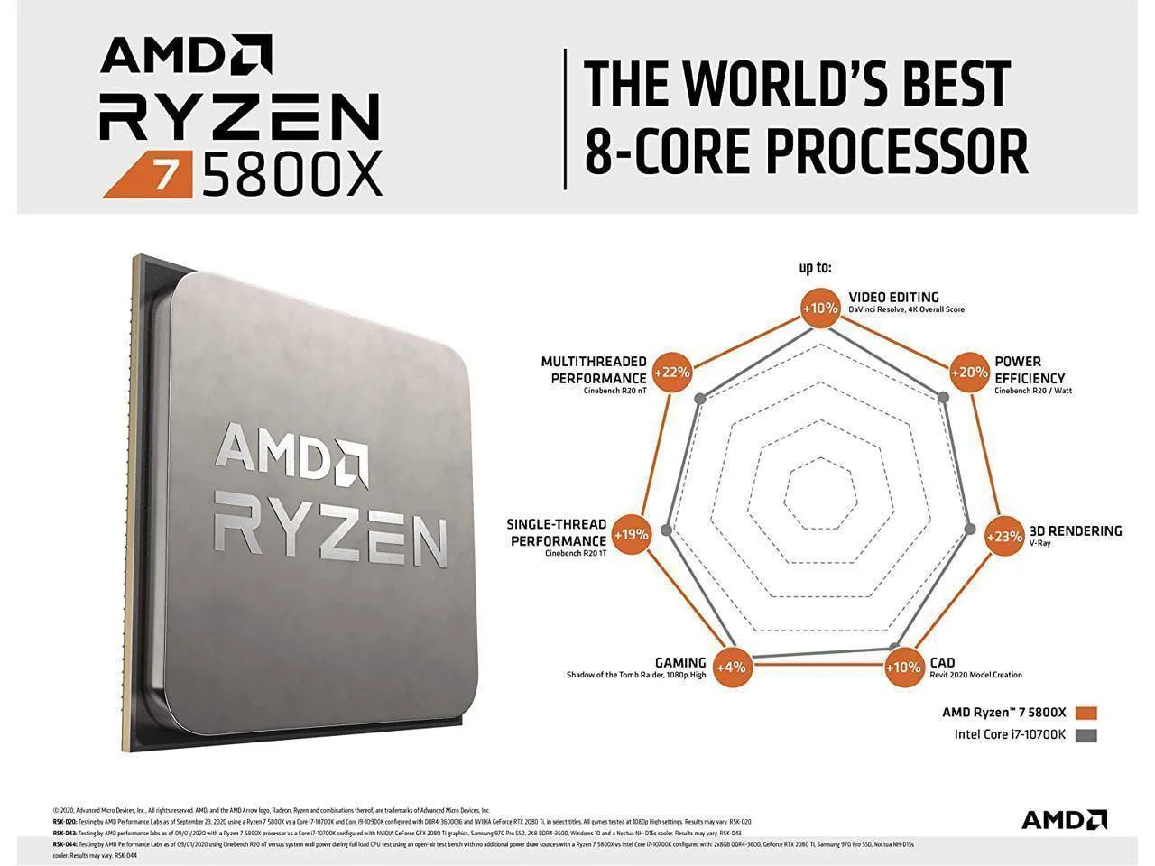 AMD Ryzen 7 5800X Vermeer 8-Core 3.8 GHz Socket AM4 Processor, 105W, 32MB L3 Cache