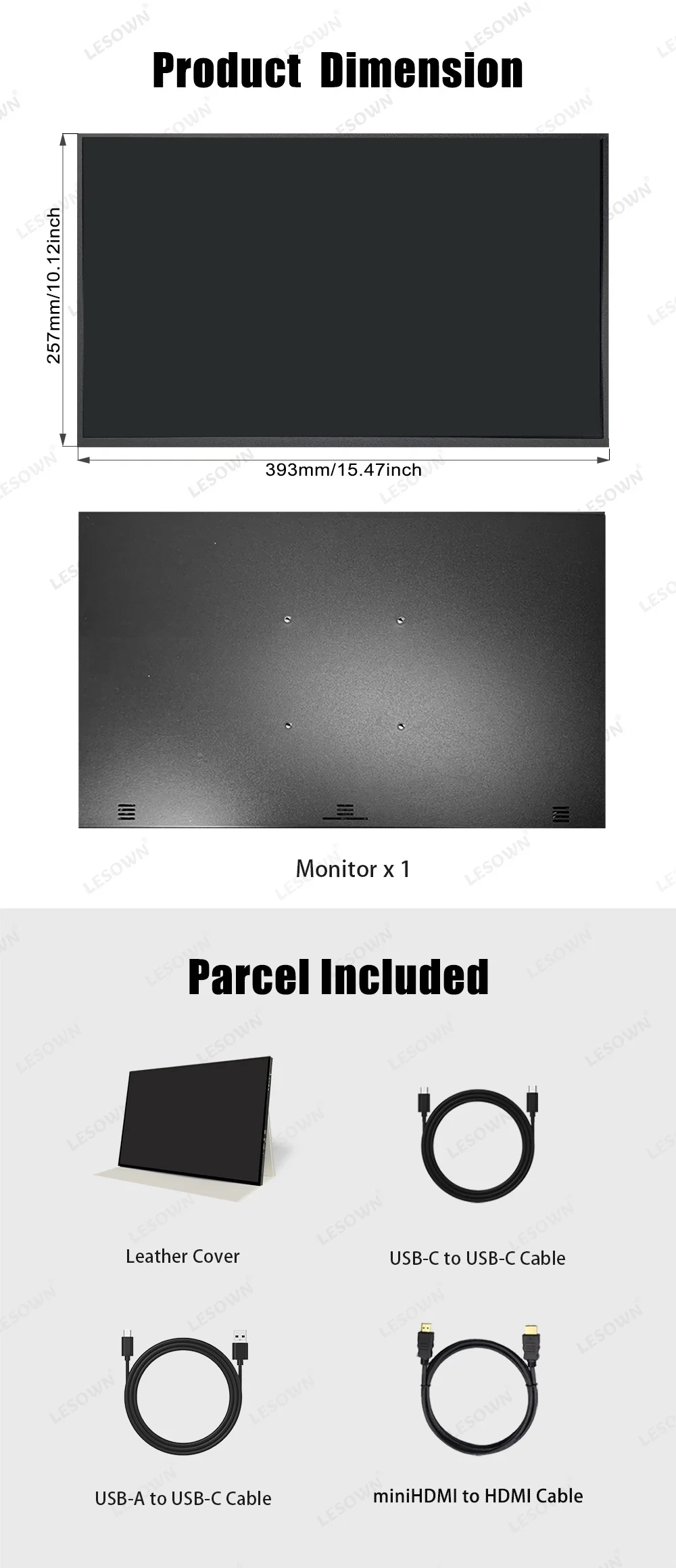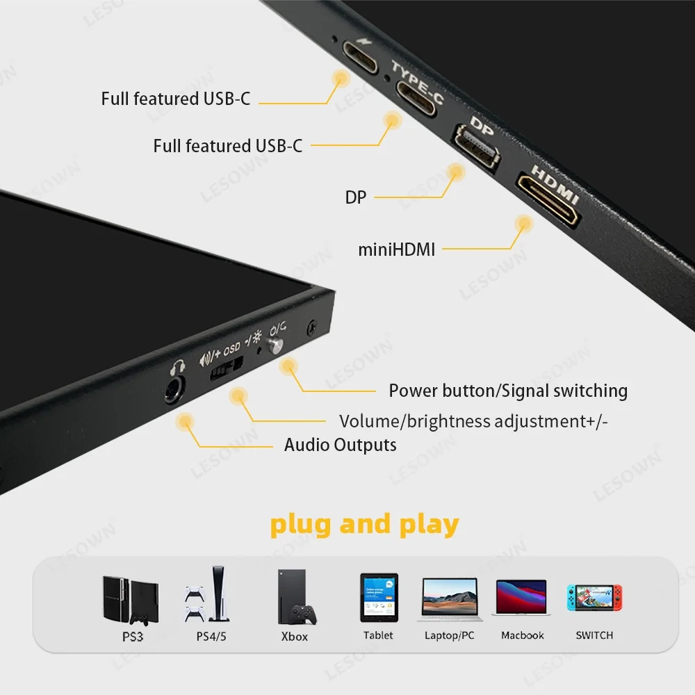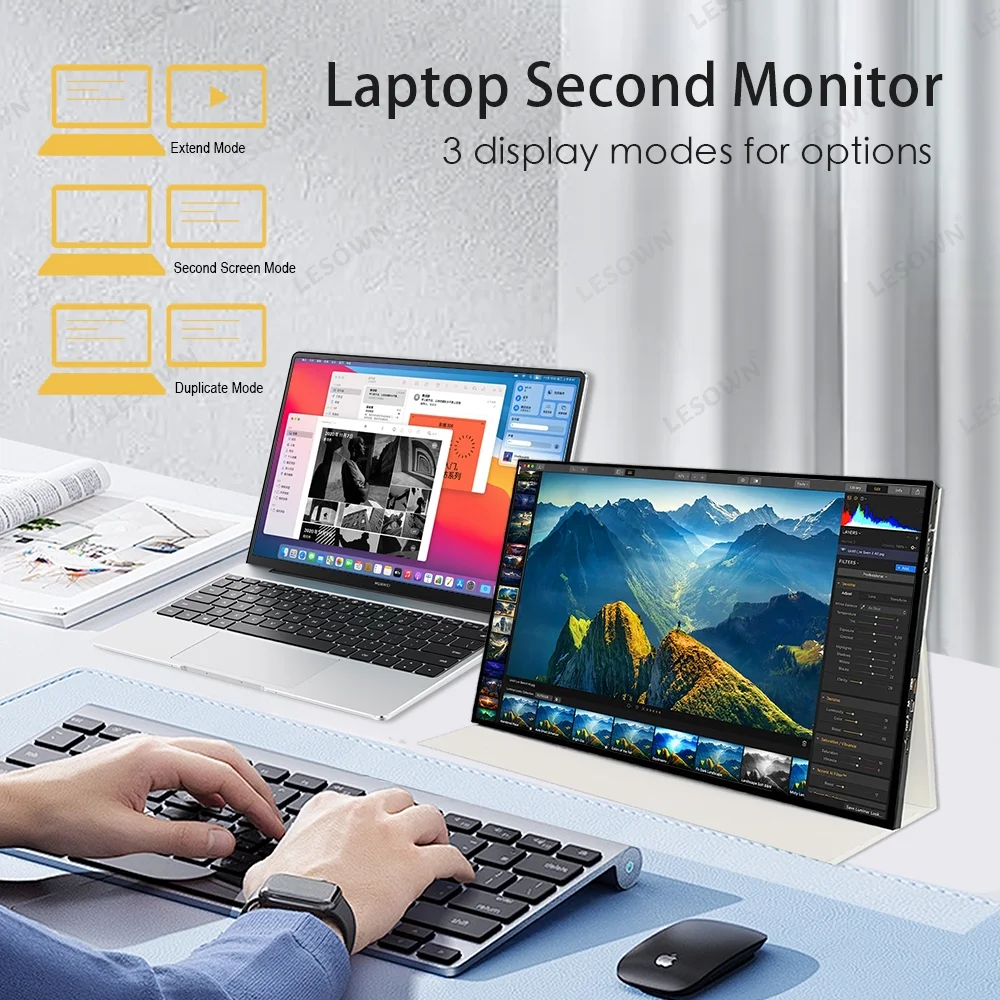 LESOWN 120Hz Ultra Wide Secondary Screen 18 Inch Portable Monitor 16:10 100%sRGB USB-C HDMI 1920x1200 Laptop Extension Display for Phone PC Switch