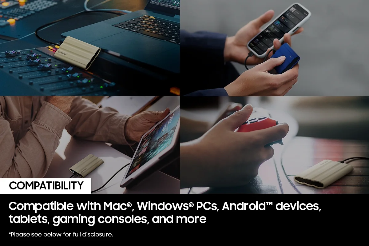 SAMSUNG T7 Shield 2TB Portable SSD - USB 3.2 Gen 2 - USB-C - 256-bit AES - Black