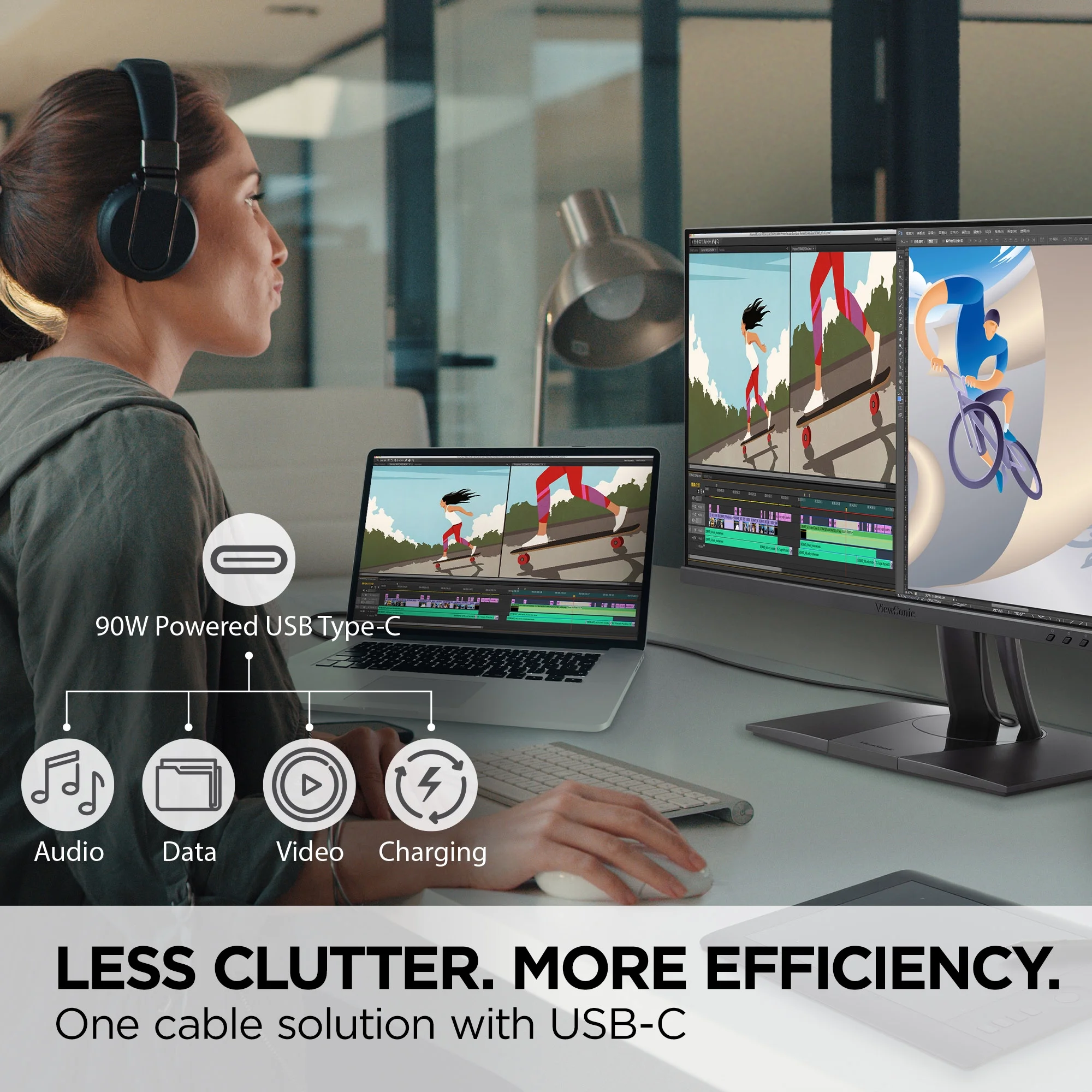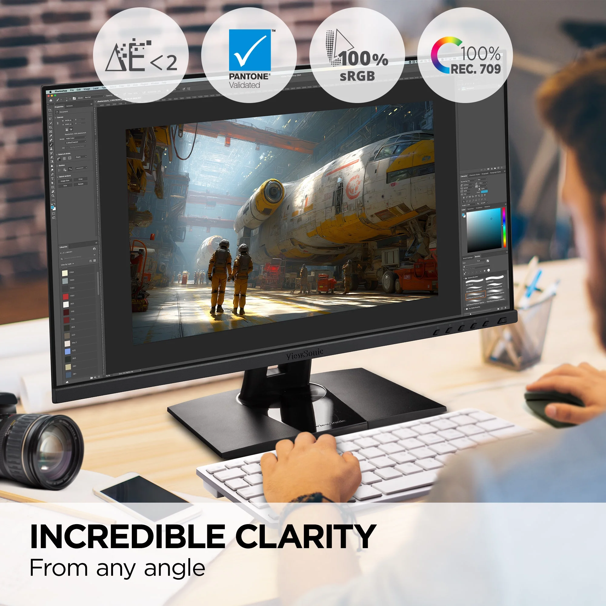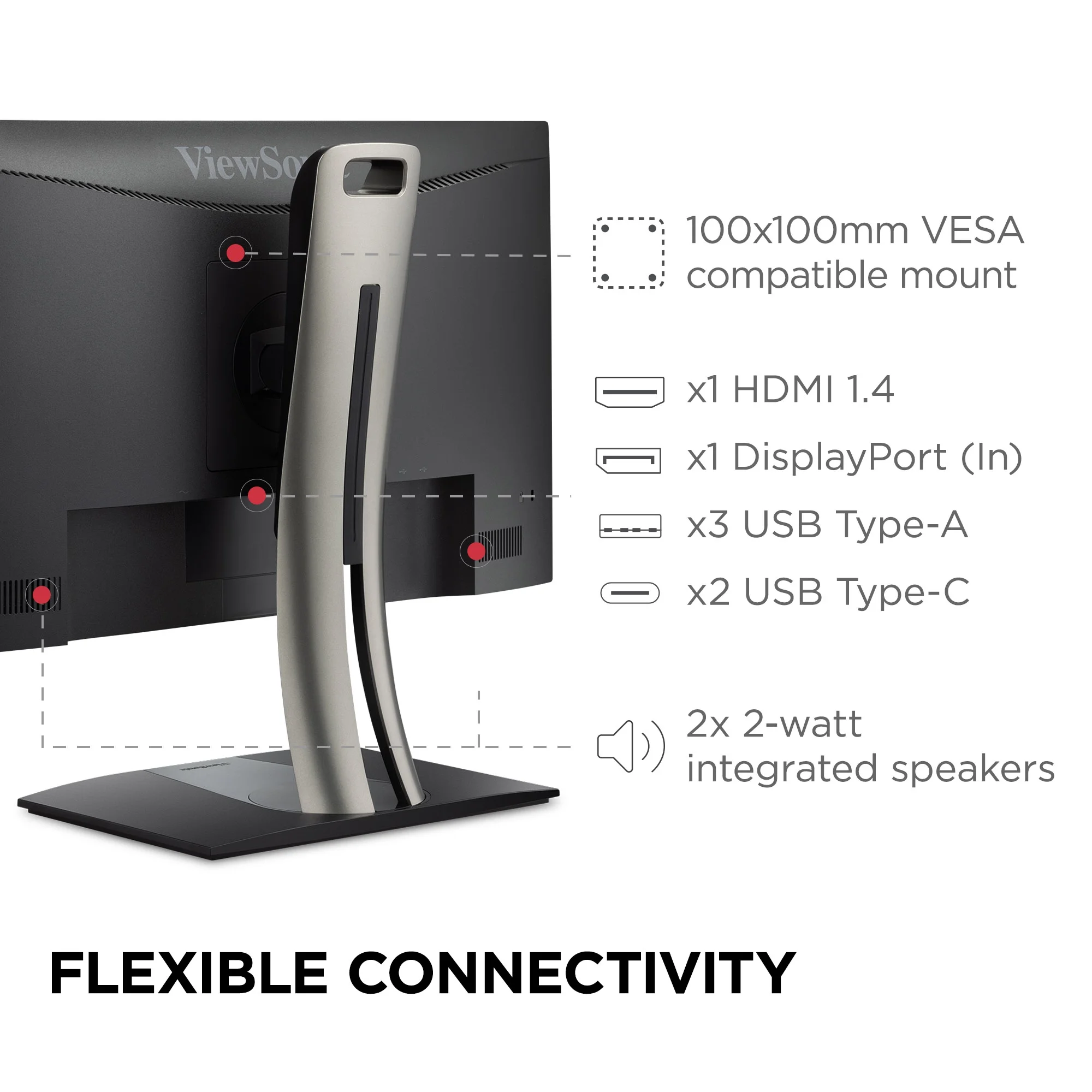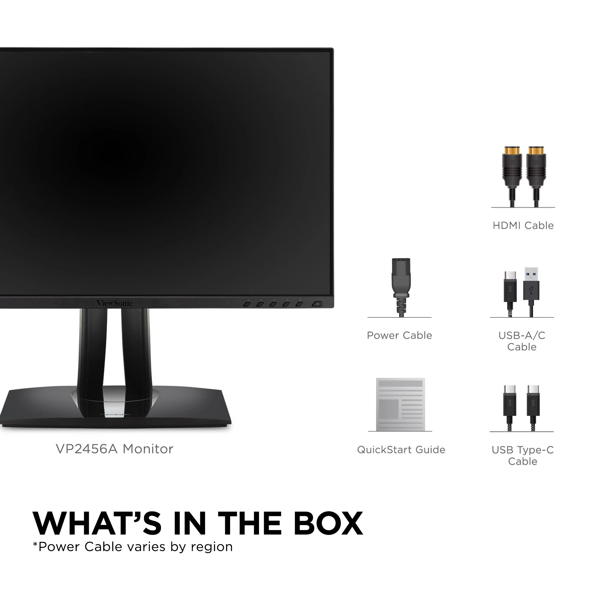 ViewSonic VP2456A 24 Inch 1080p IPS Monitor with Advanced Ergonomics, ColorPro 100% sRGB Rec 709, Pantone Validated, 14-bit 3D LUT, 120Hz, USB, HDMI, DisplayPort, 90W USB C for Home and Office