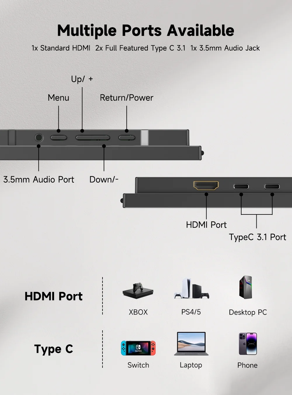 "UPERFECT Z Triple Portable Monitor | 14"" FHD 1080P IPS for Large PC, Chromebook, MacBook | USB C HDMI Display"