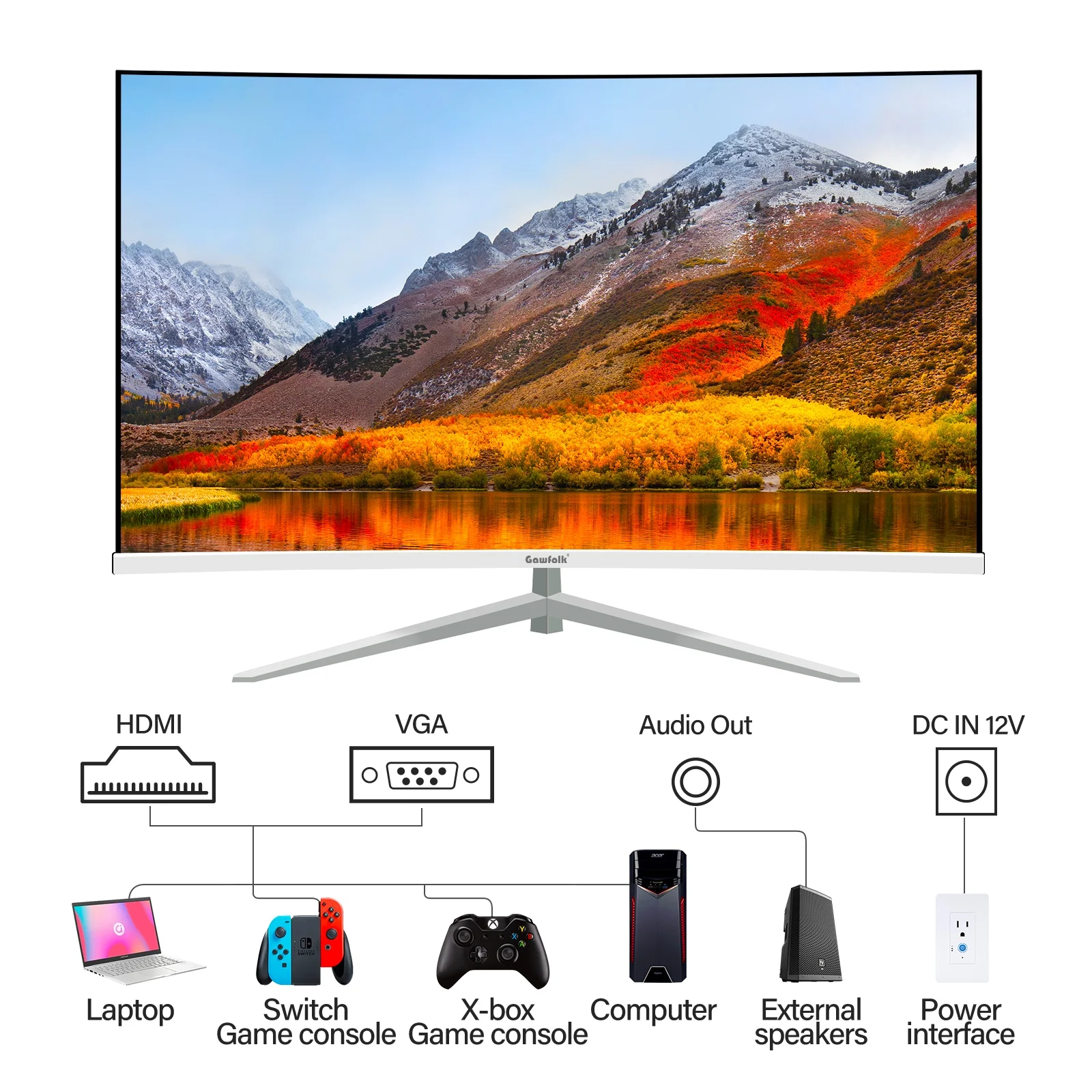 Gawfolk 32 Inch Computer Monitor, Ultra-Thin Zero Frame, Full HD 1920 x 1080p Curve Display, Home Office Business PC Monitor