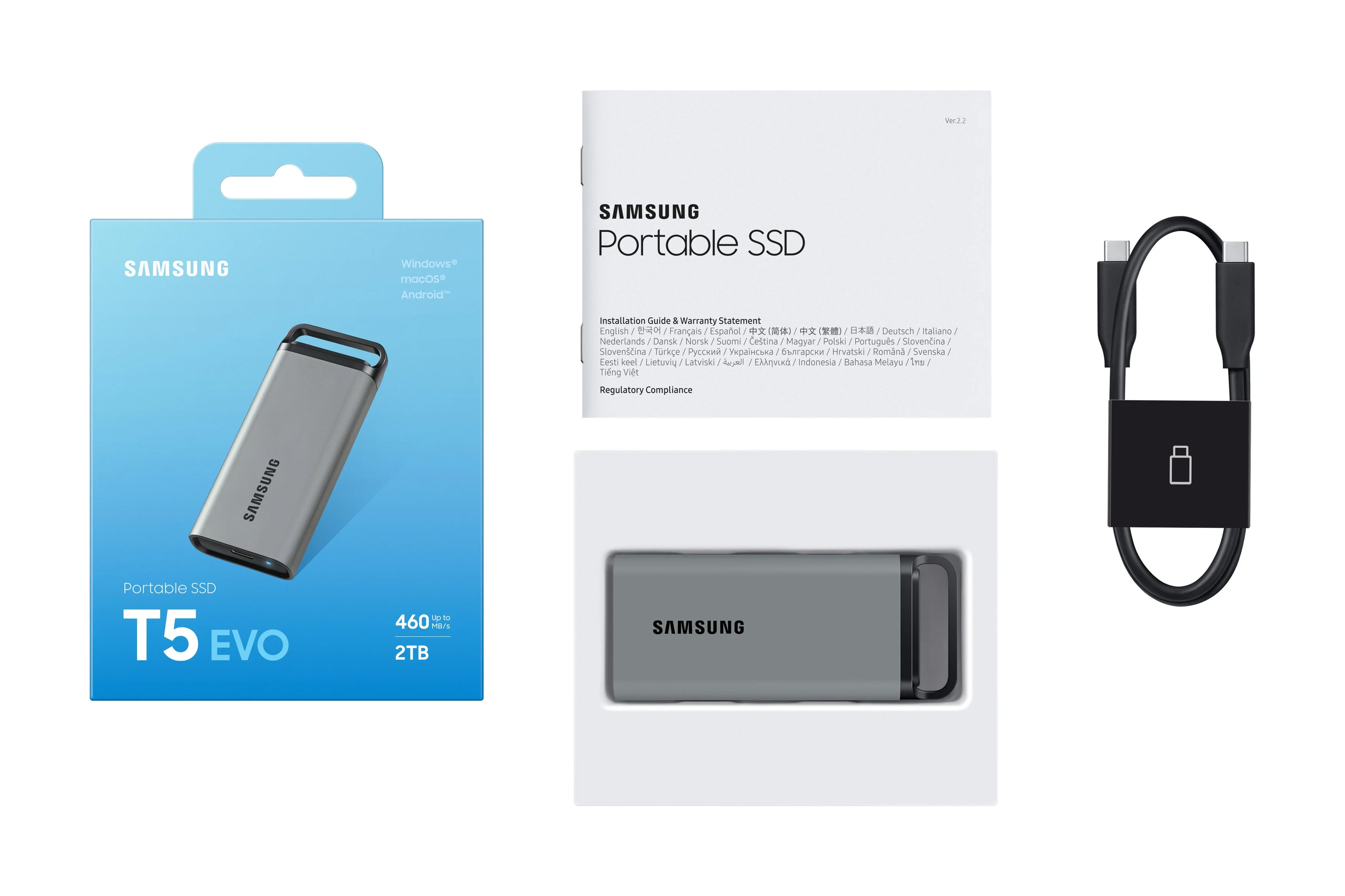 SAMSUNG T5 EVO Portable SSD 2TB Gray, Up-to 460MB/s, USB 3.2 Gen 1, External - MU-PM2T0G/WW