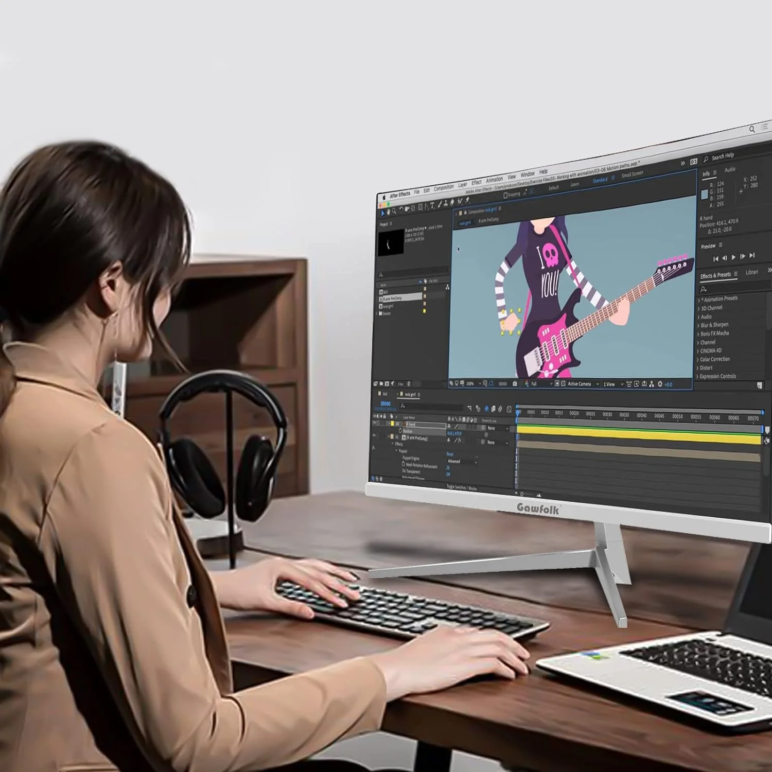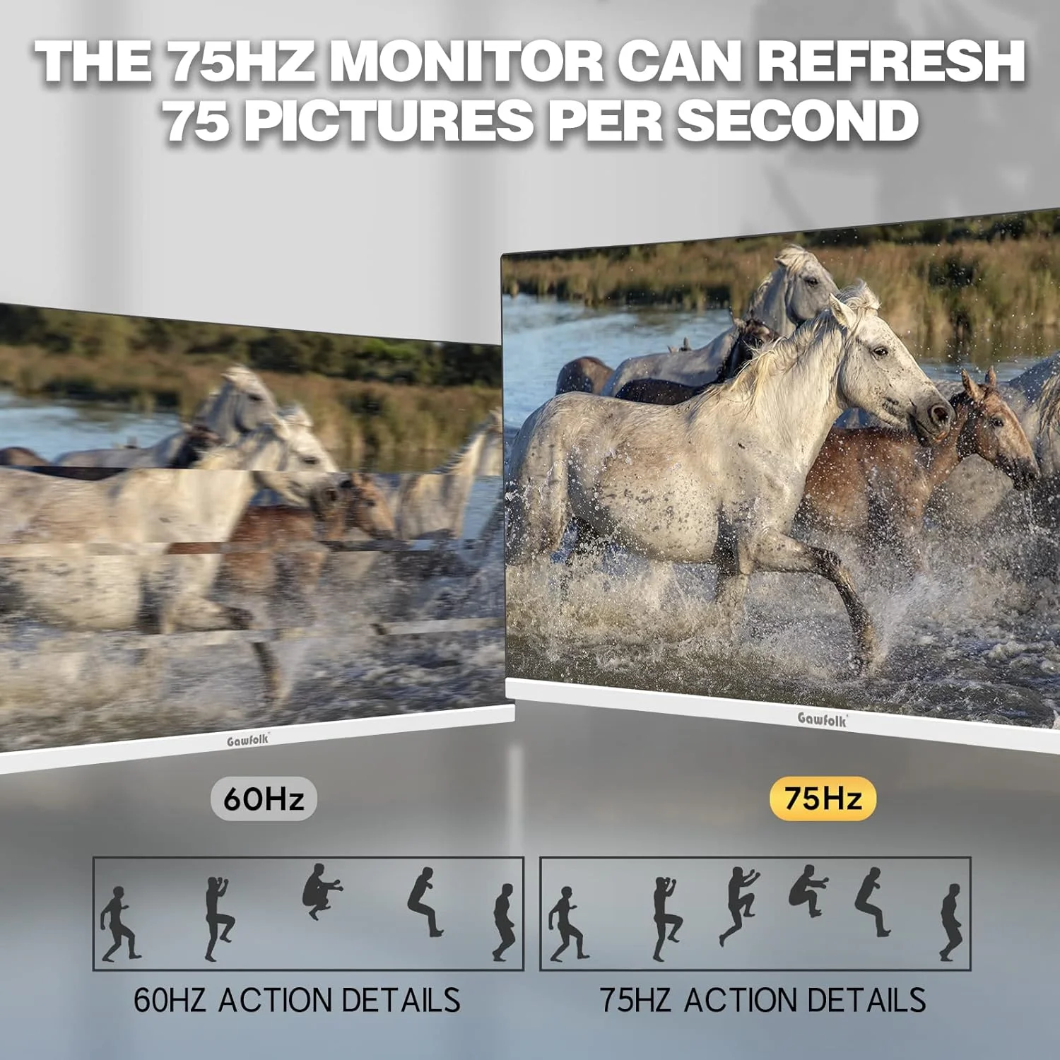 Gawfolk 24 Inch Wide Screen Monitor FHD 1080p 75Hz Ultra-Thin Bezel-less VA Display for Home Office Movies