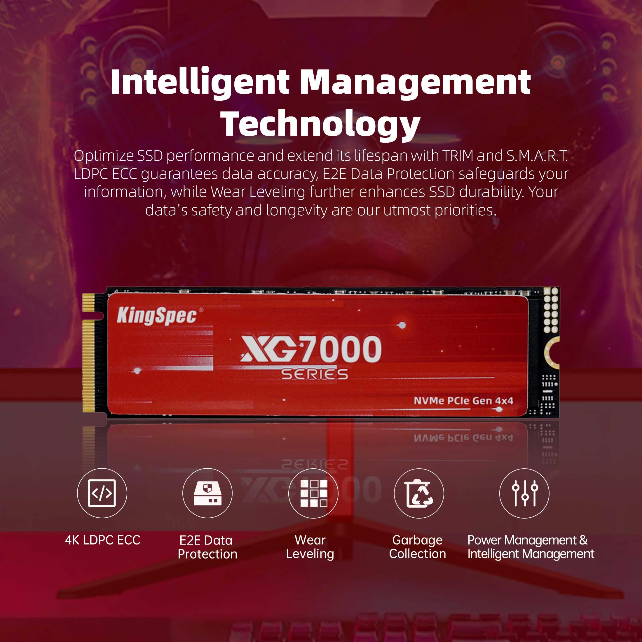 KingSpec XG7000 512GB NVMe SSD PCIe 4.0-7400MB/s Read Speed, 3D TLC NAND M.2 2280 Internal SSD, Compatible with Gaming PC, Laptop, PS5 Console