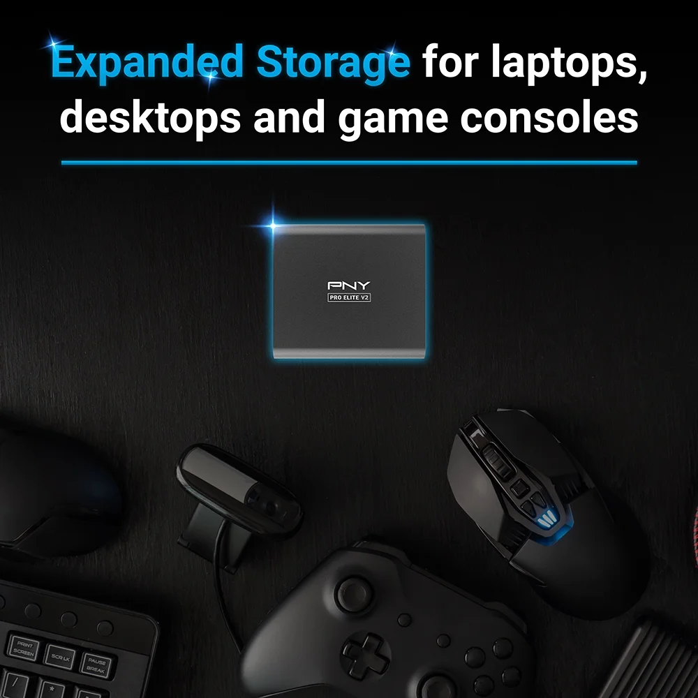 PNY Pro Elite V2 1TB USB 3.2 Gen2x1 TypeC External Portable SSD – Up to 1,100MB/s PSD0CS2160-1TB-RBW
