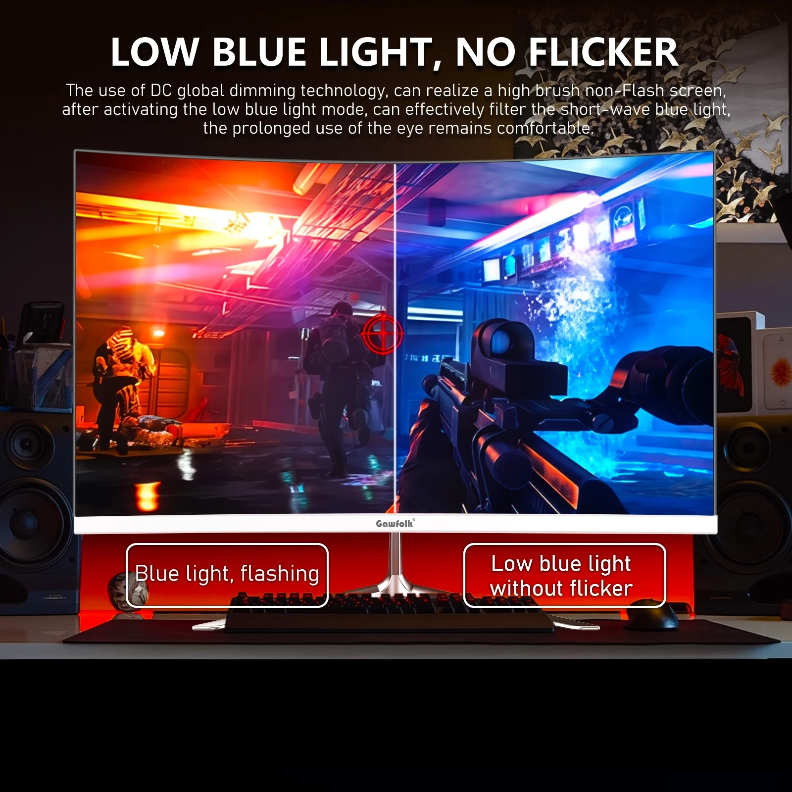 Open Box Gawfolk 24.5" Gaming Monitor Curved 1080P 120Hz with Built-in Speakers,Upports 75×75mm Wall Mount, Black