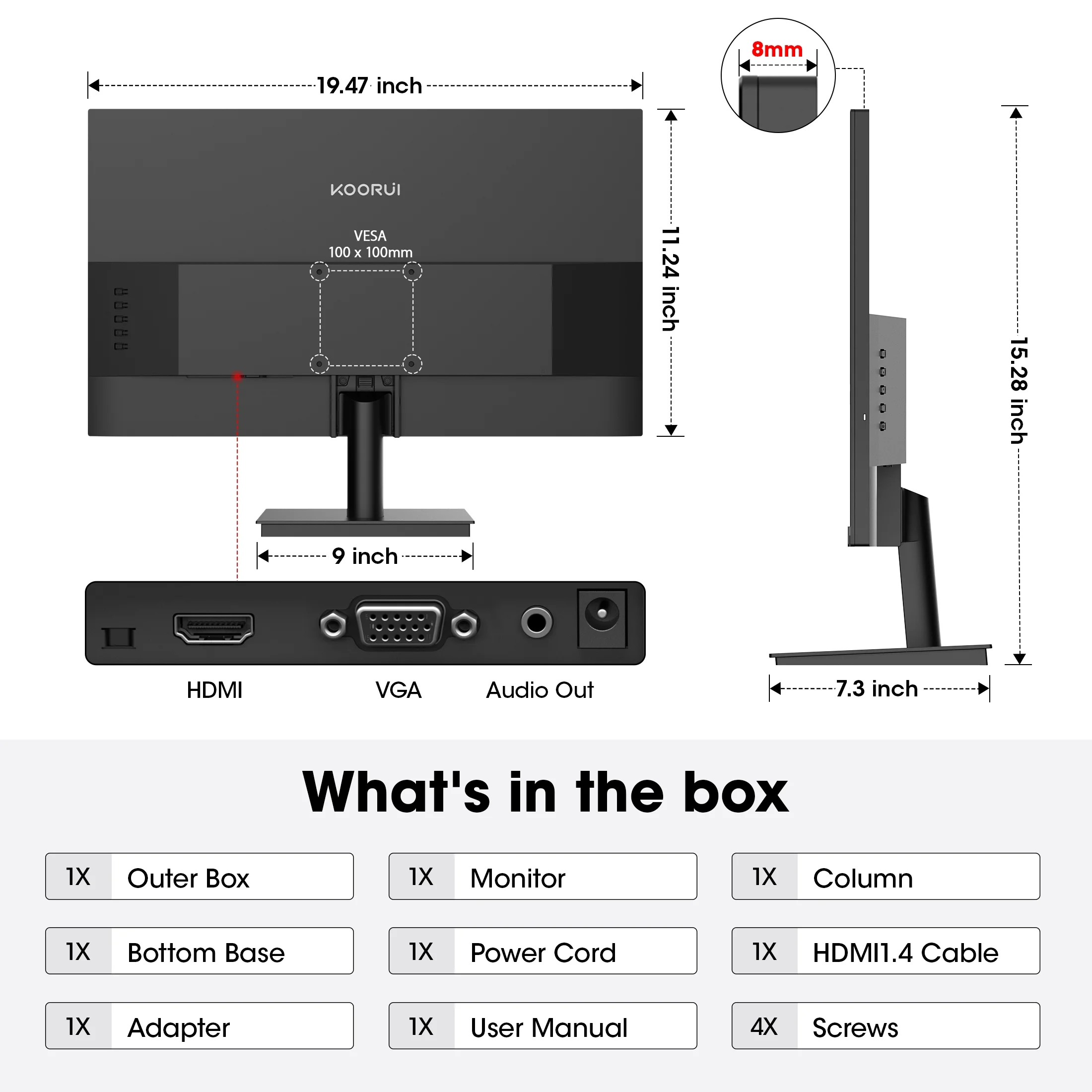KOORUI 21.5'' HD VA Display, 75Hz Computer Monitor, 99% sRGB, HDMI VGA, 22N1