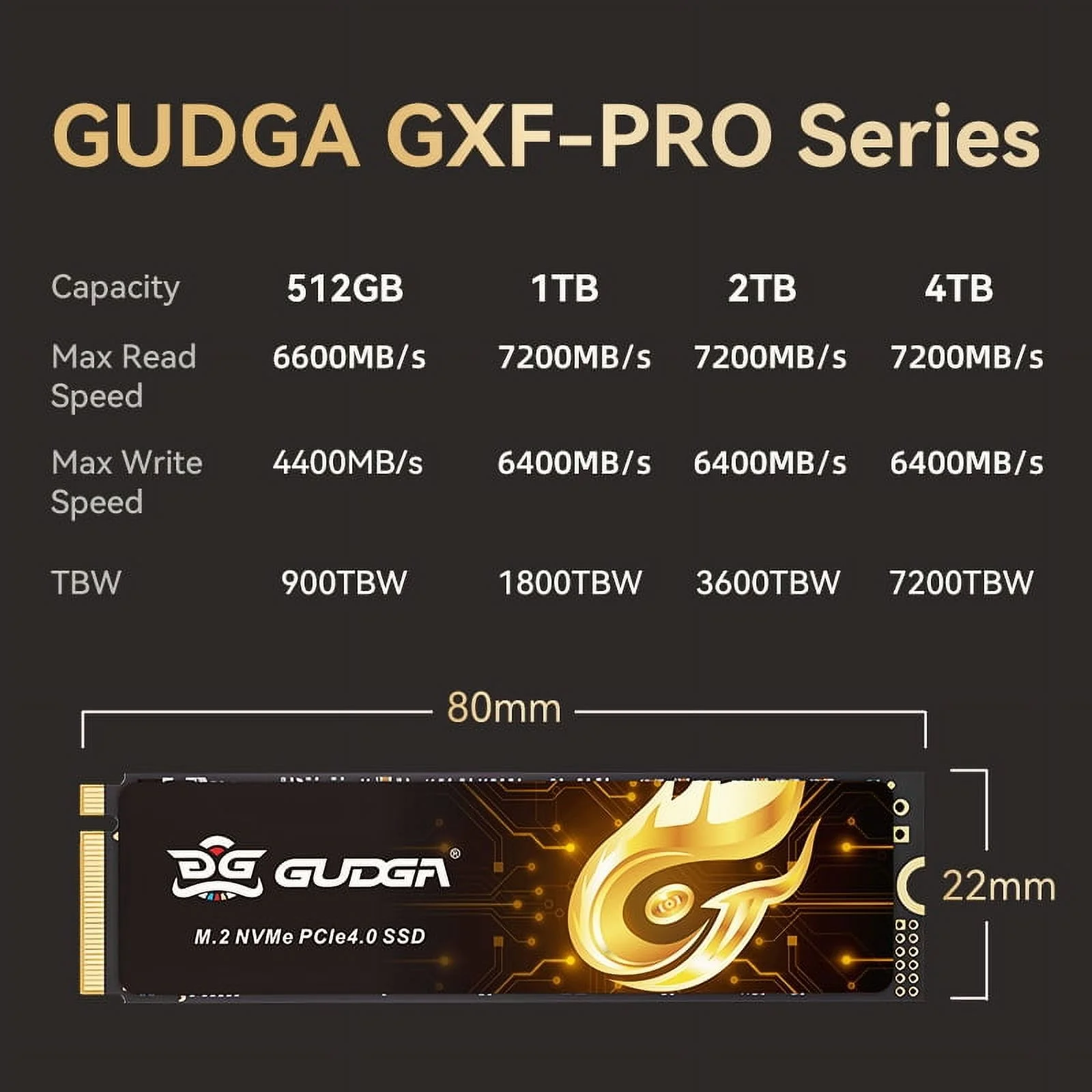 GUDGA 512GB M.2 2280 PCIe 4.0x4 NVME SSD Read Speed Up to 7200MB/S 3D TLC NAND Flash Internal Solid State Drive for PS5 PC Desktop Laptop Game-Player With Heatsink