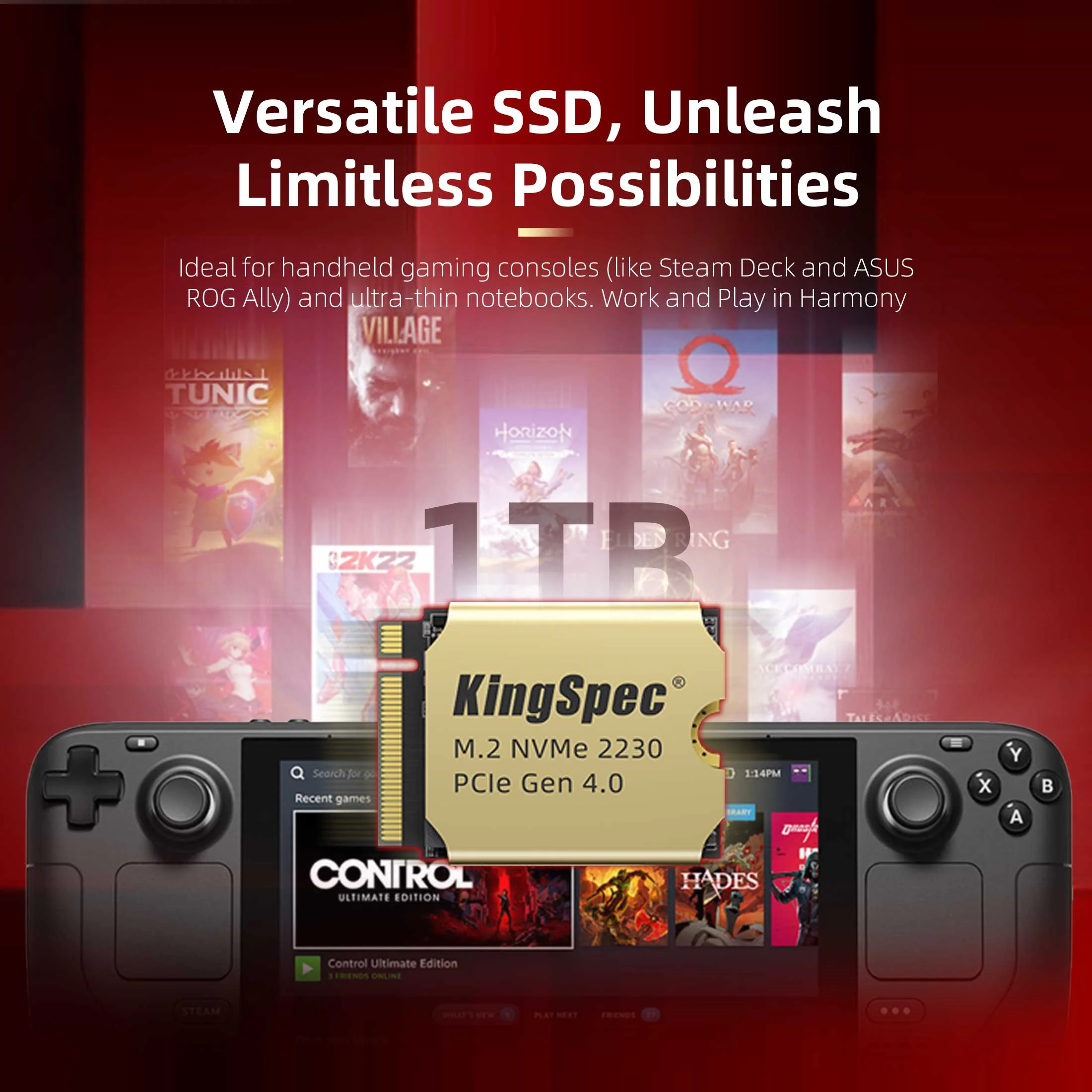 KingSpec XF 512GB M.2 2230 SSD PCIe 4.0, 5000MB/s Read Copper Heatsink, 3D NAND Flash, Compatible with Steam Deck/ASUS ROG Ally/Surface Pro