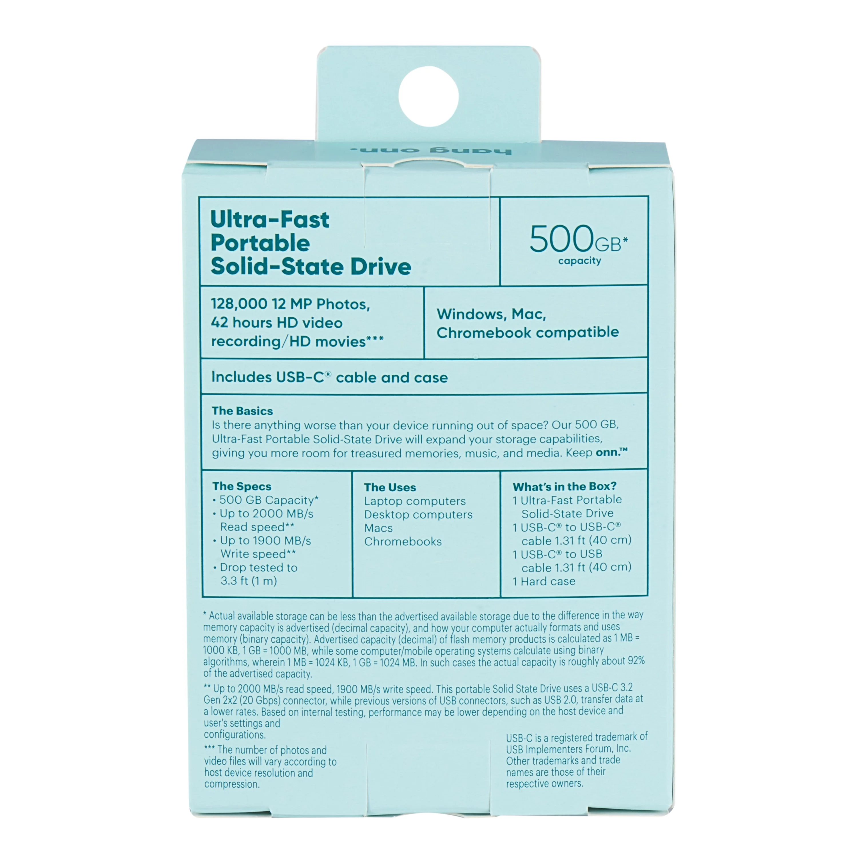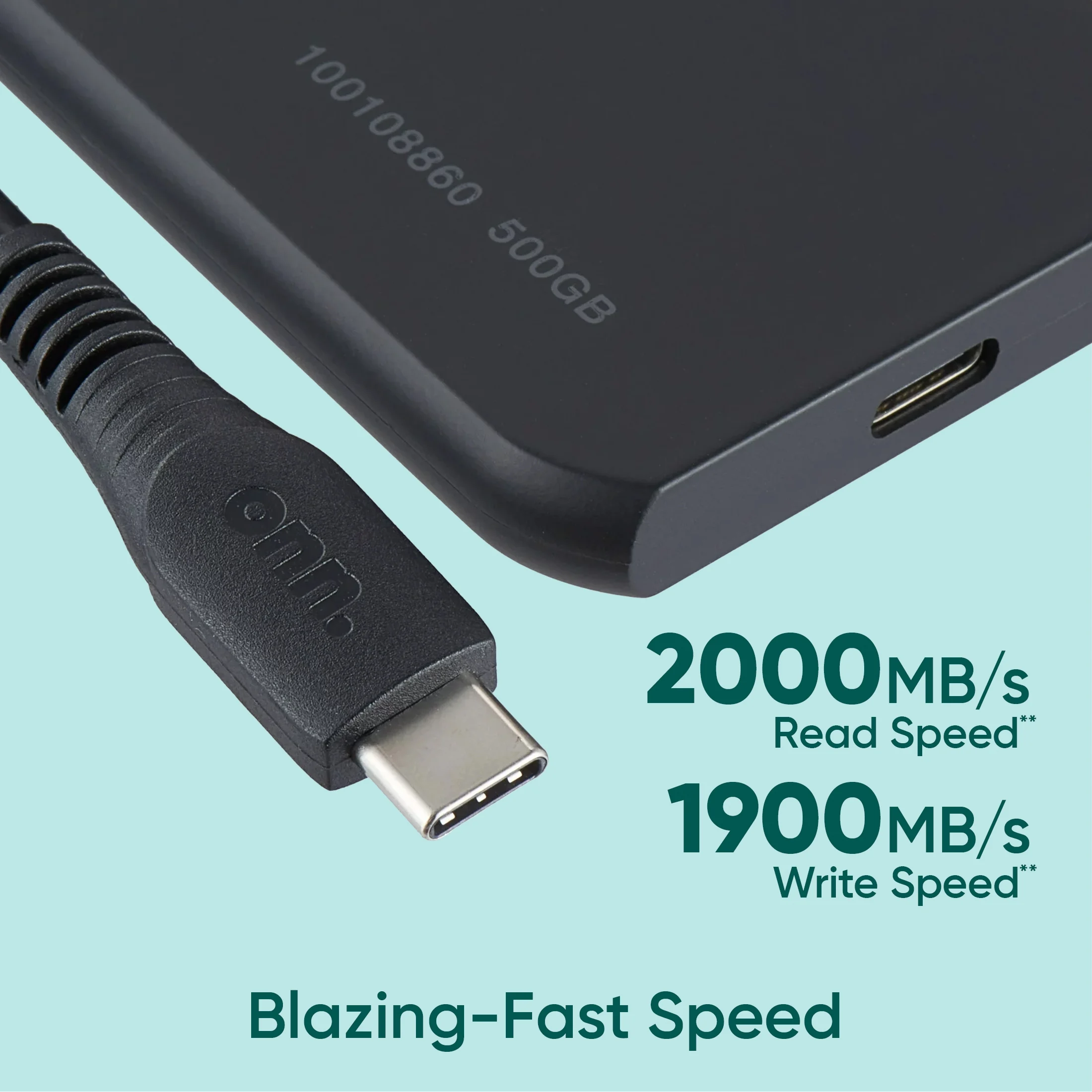 Free Shipping! Onn+ 500GB External Portable Solid-State Drive Ultra-Fast USB-C, 2000MB/s Read, 1900MB/s Write